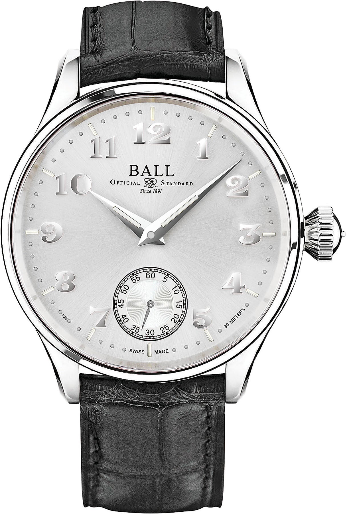 Ball Watch Company Trainmaster Cleveland Night Express NM3038D-LL2J-WH. A stunning creation from Ball Watch company to mark the brands connection with railroad heritage. Based on firm values such as precision, reliability and tradition, the Ball Trainmaster Cleveland Night Express encompasses legible time reading ability with a unique and clean aesthetic. Angular cut hour and minute indices sweep over a silver lacquered dial decorated with stainless steel Arabic numbers whilst the Ball Watch Company logo sits nobly underneath the 12 o clock location. The watch face carries unimposing dimensions of 44mm in diameter and a pleasant 11.55mm in depth. The Ball Cleveland Night Express from the Trainmaster collection illustrates a selection of beautifully manufactured features such as the small seconds sub dial at the 6 o clock location and a sapphire crystal glass which protects the watch in depths of 300 meters. The Trainmaster features a luminescent hour and minute hand, quick set luminous indexes and a screw down crown. Powered by the Ball movement RR2101, the timepiece is finished on a stunning black leather strap, versatile for everyday wear.