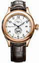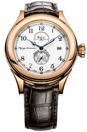 Ball Watch Company Trainmaster Flying Scotsman Limited Edition NM2198D-PG-LCJ-WH. Produced in a limited series paying homage to the 149th anniversary of the first trip made by the British train, the Trainmaster Flying Scotsman subtly blends a classic, elegant timepiece with today's watchmaking lines and technology. The superb 18-carat rose gold case is delicately engraved with the effigy of the Flying Scotsman on the caseback rim whose transparent sapphire crystal reveals the workings of the ETA 2895-2 automatic mechanical movement. The absolute precision of this model is certified by the inscription "Automatic Chronometer" proudly displayed on the white enamel dial. The crown, the typography of the Arabic numerals, the characteristic shape of the hands and the second dial at six o'clock are directly inspired from the first BALL pocket watches used by railroad employees, and give the Trainmaster Flying Scotsman an irresistible retro appeal. The dial indexes and the hour and minute hands are fitted with the revolutionary luminous technology developed by BALL Watch. Micro-tubes of H3 gas requiring no external source of light or energy glow up to 100 times brighter than conventional luminous paints to provide an accurate reading of the time even in complete darkness. This highly crafted timepiece is set off by a crocodile leather strap with an 18-carat rose gold pin buckle.