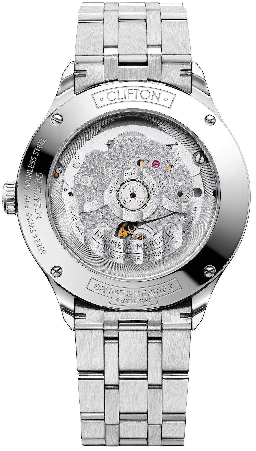 This Baume and Mercier Clifton Baumatic watch perfectly characterises the watchmaking expertise and contemporary style that the brand has been recognised for since its founding in 1830. The elegant curves of the stainless steel case and the smooth finish of the interchangeable bracelet mould effortlessly to the wrist for a comfortable and sophisticated finish. It’s clear to see that every Baume et Mercier watch has its own distinctive personality and this Clifton Baumatic model is no exception.