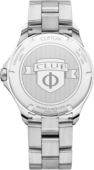 The Baume and Mercier Clifton Club watch collection optimises flawless watchmaking by bringing together both contemporary and classic aesthetics and harnessing sporty and functional attributes like the sturdy quartz movement, 100 metre water resistance and antireflective sapphire crystal glass. By alternating with a polished and satin finish, the contours of the case are accentuated and the design is completed by the Clifton Club insignia.