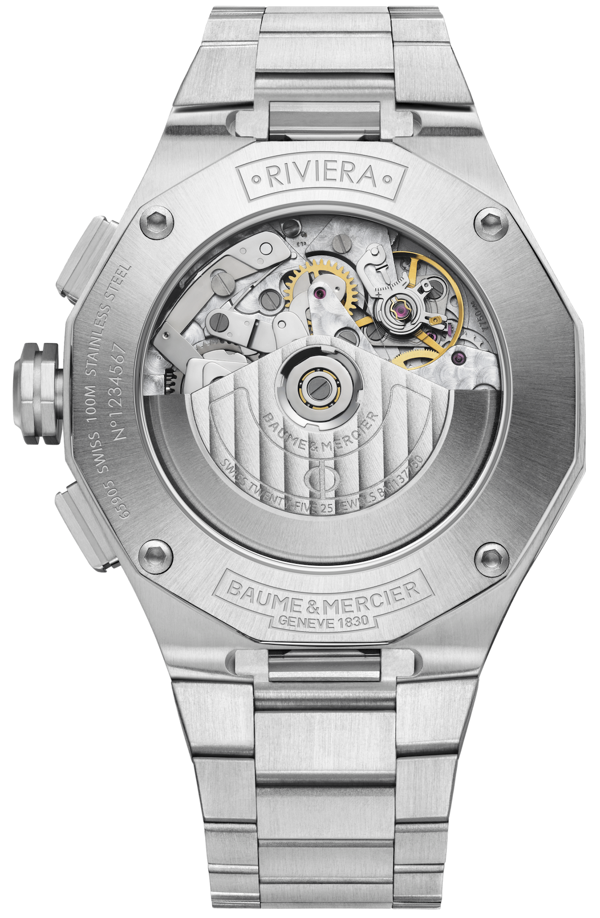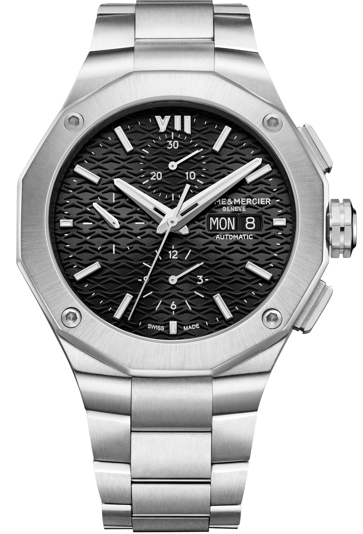 Baume et Mercier Watch Riviera Chronograph Mens M0A10624. The Baume et Mercier watches Riviera watch returns this year to revive the spirit of a distinguished watchmaking era. One of the Brands icons, it still features the distinctive bezel and streamlined steel watchcase that have brought it such renown. Rather than a revival, the fifth generation of this legendary watch strikes the chord of an authentic renewal.