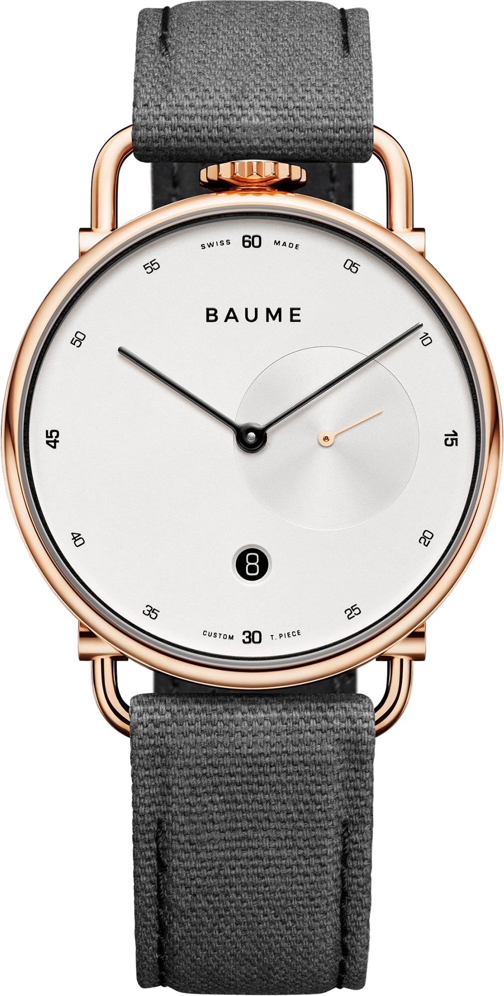 Baume et Mercier expand their luxury watch collections with the Baume series, a family of stunning dress watches which focus on three design codes: moving lugs for better comfort, an interchangeable lined strap with cork for comfort and an off-centre crown at 12 o’clock which takes inspiration from some of the Swiss watch manufacturer’s earliest creations, the pocket watch. This particular men’s Baume quartz watch calls for attention with its exquisite white and black colourway. The dial is dressed in a beautiful white opaline finish with a matching white snailed small seconds counter at 3 o’clock and a grey cotton strap lined with cork. To pair, black is incorporated around the flange, on the date window and through the stitching on the strap.