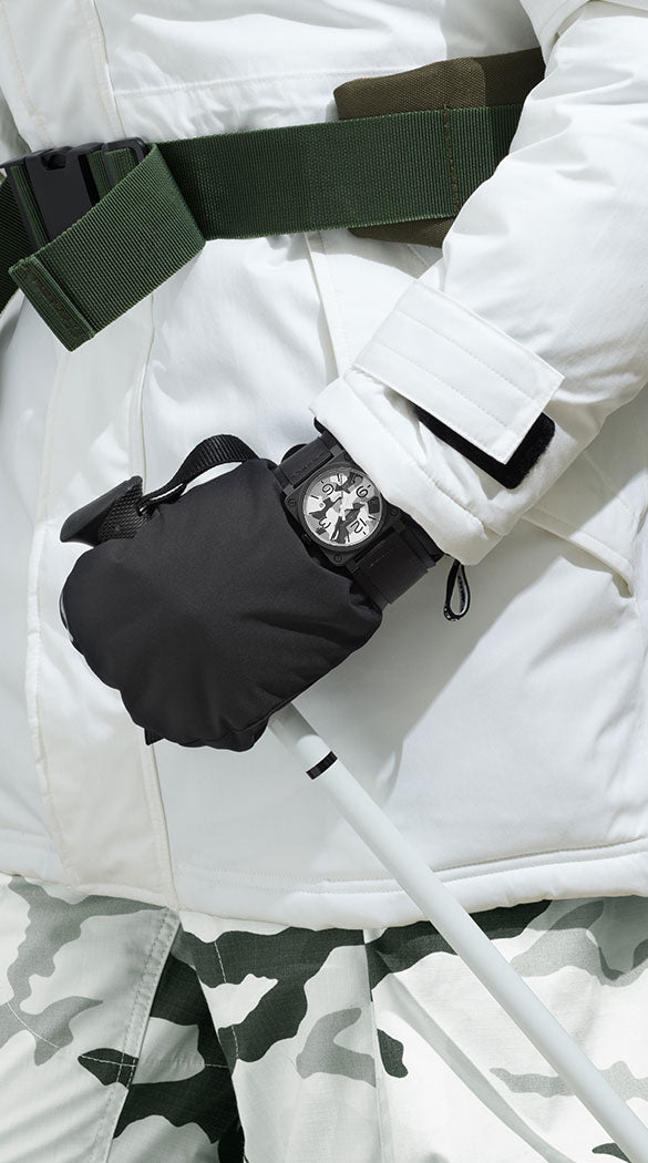 Designed especially for professionals that require a lifetime of accurate timekeeping, the Bell and Ross BR 03 92 collection has become renowned for its range of aviation tool watches, and yet with this BR 03 92 White Camo Limited Edition we get much more, a fashionable, artistic design that we can picture exploring capital cities and on ski slopes just as much as in the cockpit. As stealthy as it is functional, the Bell & Ross BR 03 92 White Camo Limited Edition features an unmissable military-inspired white camouflage pattern across its design and a covert matte black ceramic case.