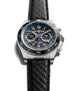 Featuring a matte black dial adorned with shots of sporty racing blue, this Bell & Ross Alpine Racing watch strengthens the French manufacturer’s ties with the motorsport industry. Bell & Ross and Renault team up once again to create another motorsport chronograph watch. This time in shades of blue, steel and black. The model is presented on a classic perforated black leather strap and secures with a stainless steel pin buckle.