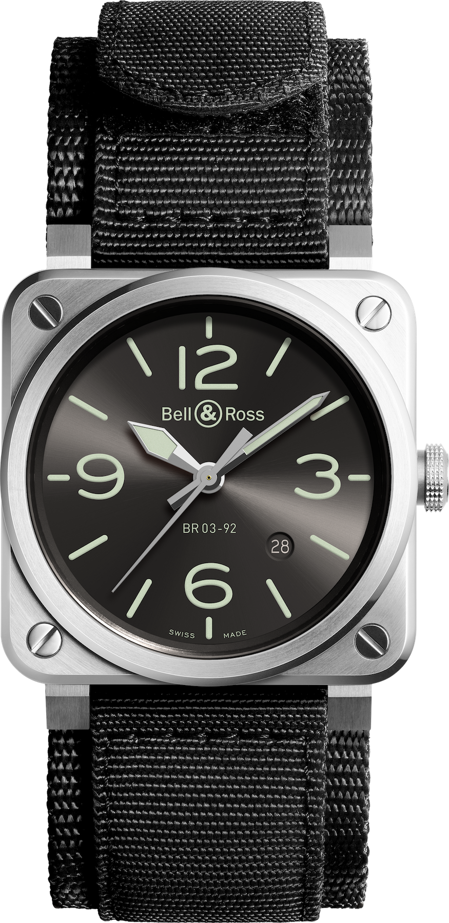 Designed according to the principles of industrial aesthetics, the BR03-92 GREY LUM is designed on a square case, which is instantly evocative of aeronautical and aviation instrument panels. As is the case for all timepieces created by Bell & Ross, this new reference bears the brand’s DNA thanks to its minimalist design and the ultra-legibility of the Super-Lumi Nova® C3 on the numerals, indices and hands on the dial.