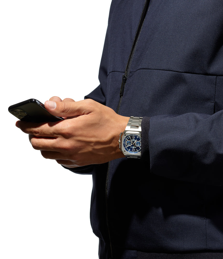 Following on from the success of the three-hand BR 05, luxury Swiss watch brand Bell & Ross have introduced the Bell & Ross BR 05 Chronograph. Still boasting perfectly flat surfaces, effortlessly integrated bracelets and a distinctive round dial within a square case, these chronograph editions introduce additional functionality with central hands for chronograph seconds and a 30 minute counter at 9 o’ clock. Designed as an urban instrument for today’s modern man, the BR 05 Chrono is just as resolutely modern as it is functional.