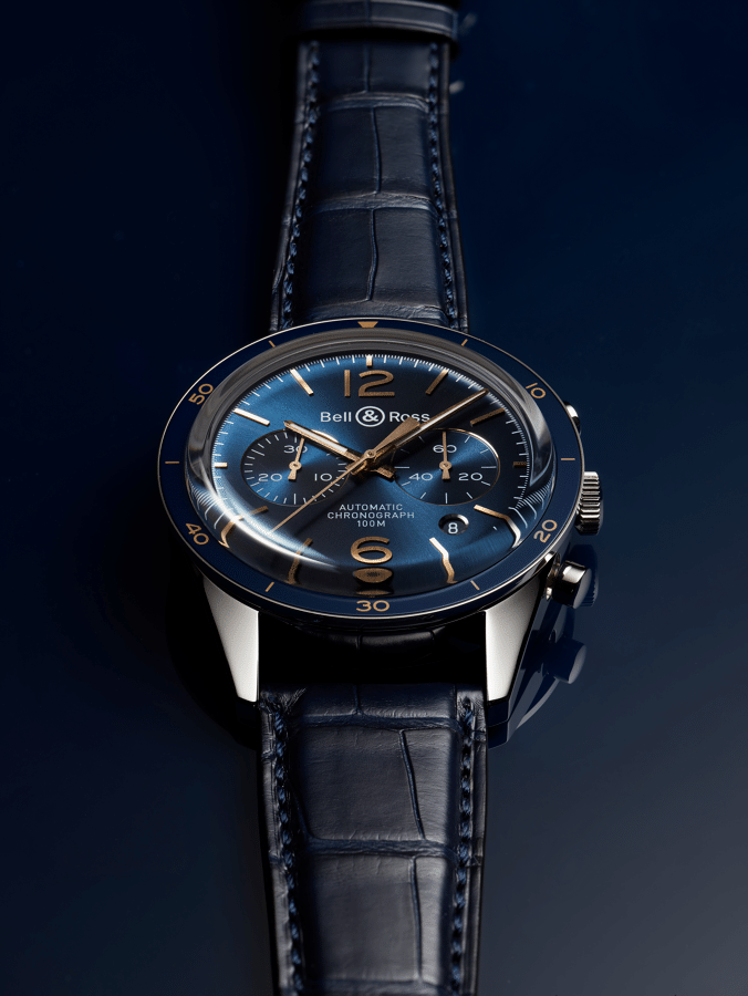 Since it was first founded, Bell and Ross Watches have had an inseparable relationship with the world of aviation. Both the watch and aviation industries seek out performance, precision, legibility and functionality, four key elements that can also be found in this Bell and Ross BR 123 Aeronavale watch. This stunning timepiece boasts a 43mm polished stainless steel case and a fixed bezel with an anodised blue aluminium ring, exquisite materials that embrace the calibre BR-CAL.305 automatic mechanical movement.