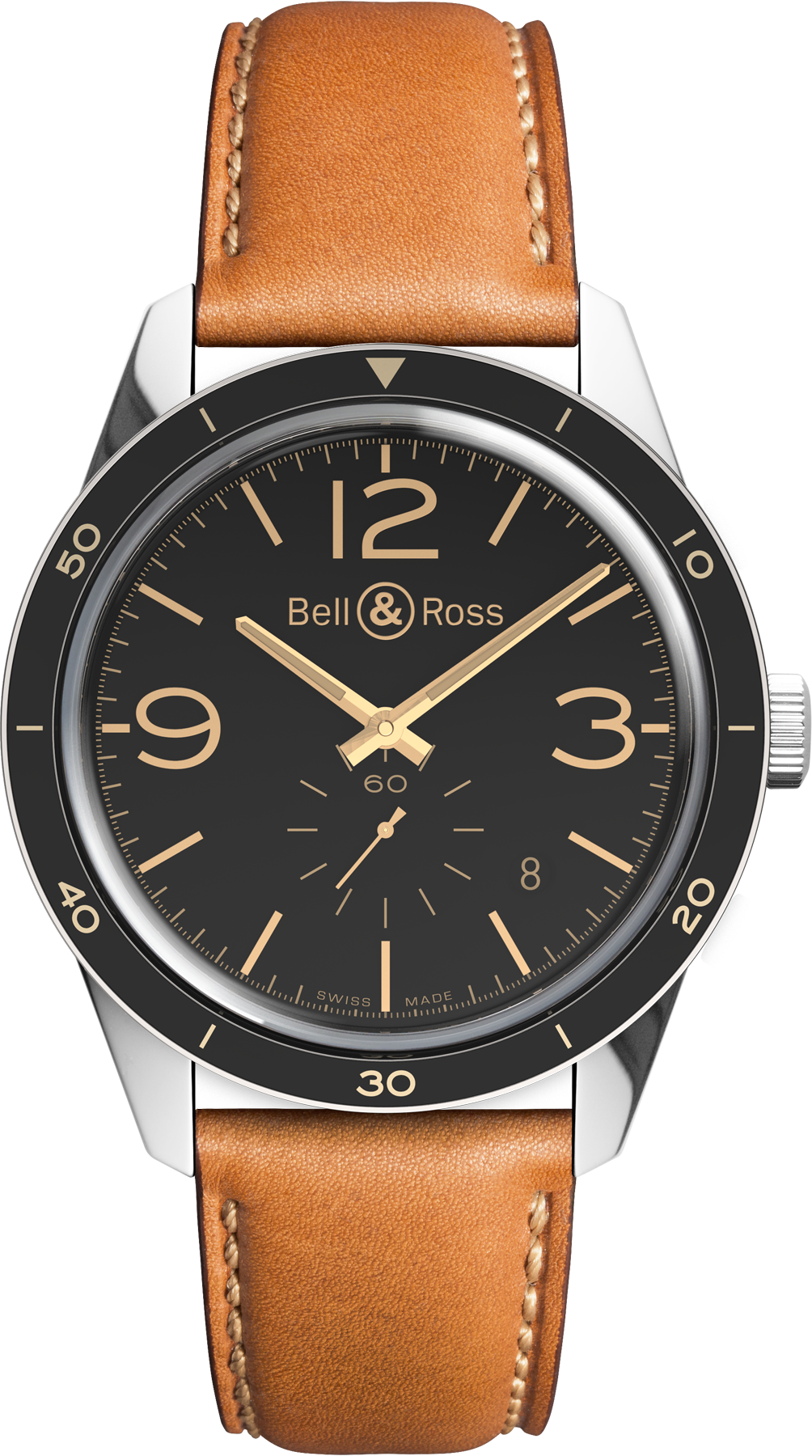 Since it was first founded, Bell and Ross Watches have had an inseparable relationship with the world of aviation. Both the watch and aviation industries seek out performance, precision, legibility and functionality, four key elements that can also be found in this Bell and Ross Vintage BR 123 Golden Heritage watch. This stunning timepiece boasts a 43mm polished stainless steel case and fixed bezel with aluminium ring that embraces the calibre BR-CAL.305 automatic mechanical movement.