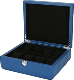 Benson Watch Case Black Series LWB.8 Blue Black Series LWB.8 Blue. The Benson Black Series watch boxes offer an extremely luxurious and convenient storage place for all types of watches. These watch boxes are made of leather and available in the colors black, dark brown, blue and carbon fiber. This Benson Black Series LWB.8 Blue watch box is suitable for storing 8 watches. The inside of the watch box is covered with soft fabric for optimal protection of the watches. The lock on the front ensures that you can also close the watch box. The beautiful finish is reflected in the fine stitching and logo stamped in the leather. The Benson Black Series LWB.8 Blue watch box comes with a 2 year warranty, certificate and Black Series carton box.