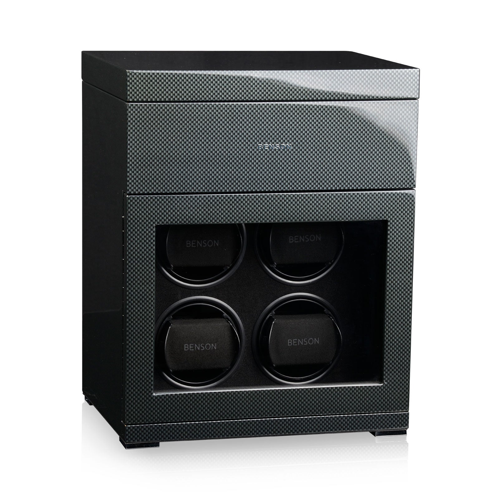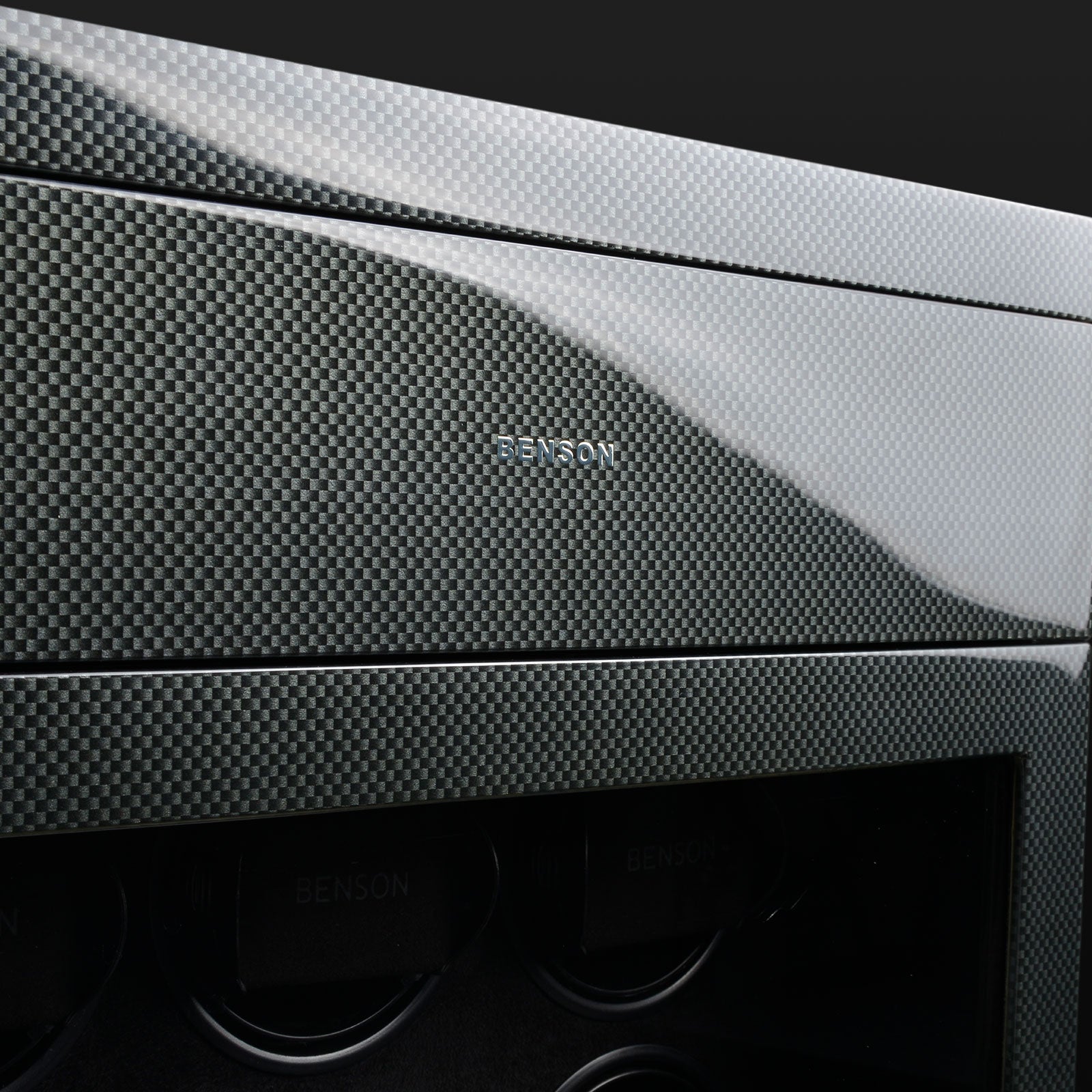 Benson Watch Winder Black Series 4.16 CF Carbon 70048-103.17. Benson watchwinders are essential accessories for automatic watches. A watchwinder provides the watch of energy, prevents wear, ensures optimum oil circulation and is a perfect storage method for your watches. We produce the Benson Watchwinders in house. This means that we optimally focus on the design, materials, technical innovations and finishing which leads to quality products. The words quality, innovation and craftsmanship do stand for our watchwinders.