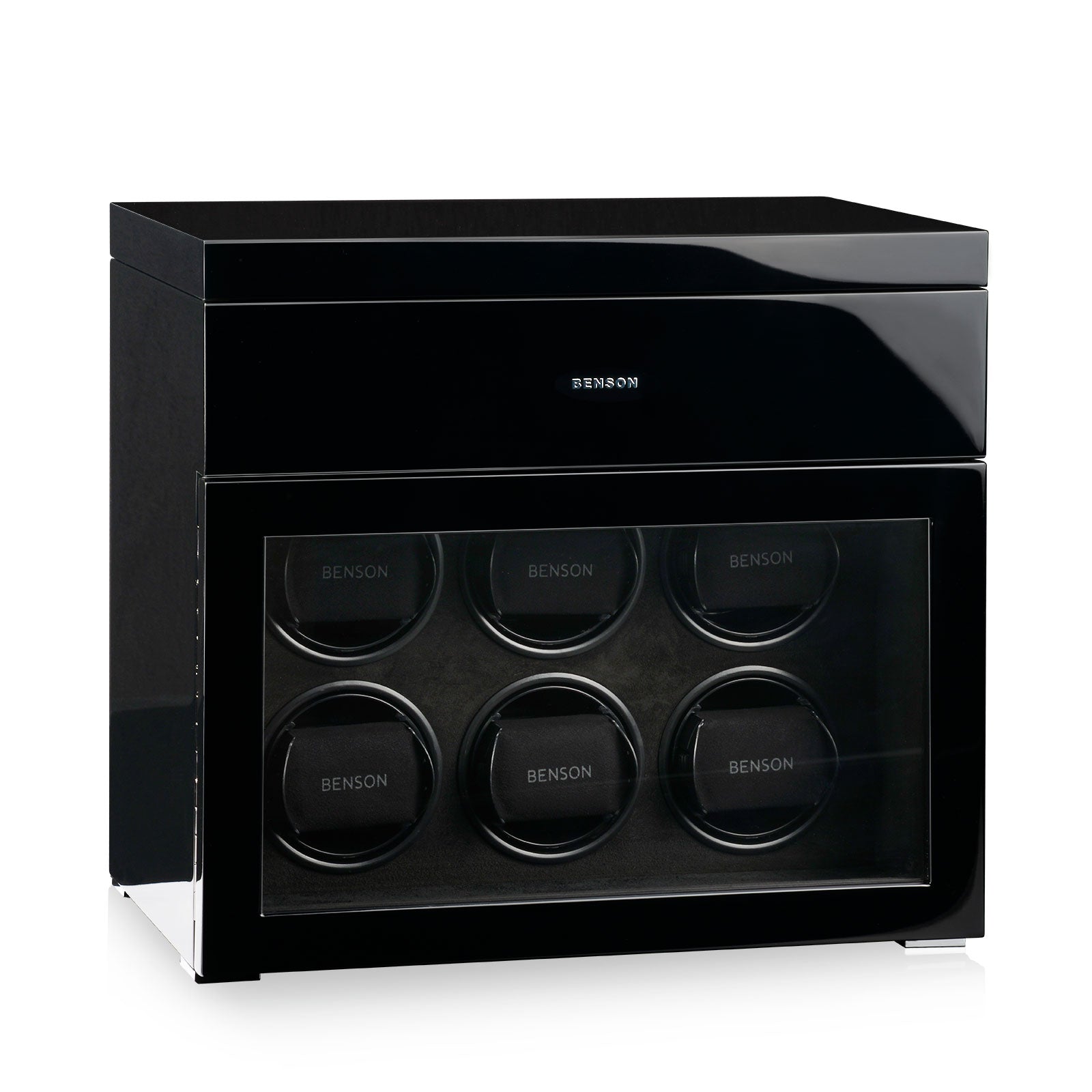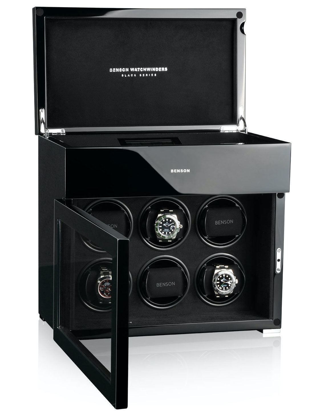 Benson Watch Winder Black Series 6.16 B Black 70048-104.11. Benson watchwinders are essential accessories for automatic watches. A watchwinder provides the watch of energy, prevents wear, ensures optimum oil circulation and is a perfect storage method for your watches. We produce the Benson Watchwinders in house. This means that we optimally focus on the design, materials, technical innovations and finishing which leads to quality products. The words quality, innovation and craftsmanship do stand for our watchwinders.