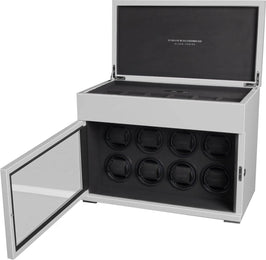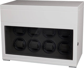 This Benson White 8 Watch Winder is part of their luxurious Black Series collection and is beautifully handmade to combine a high quality finish with a sophisticated design. Crafted from white gloss coated wood and mineral glass, this watch box has an array of settings to suit any luxury watch. With three different rotating settings, an almost virtually silent Japanese motor and a touch screen display, this Benson White 8 Watch Winder is a must have for any watch fanatic.