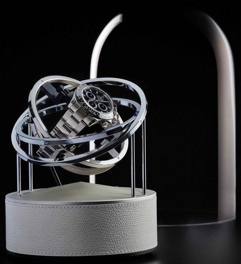 Bernard Favre Watch Winder Planet Double Axis White Leather Base