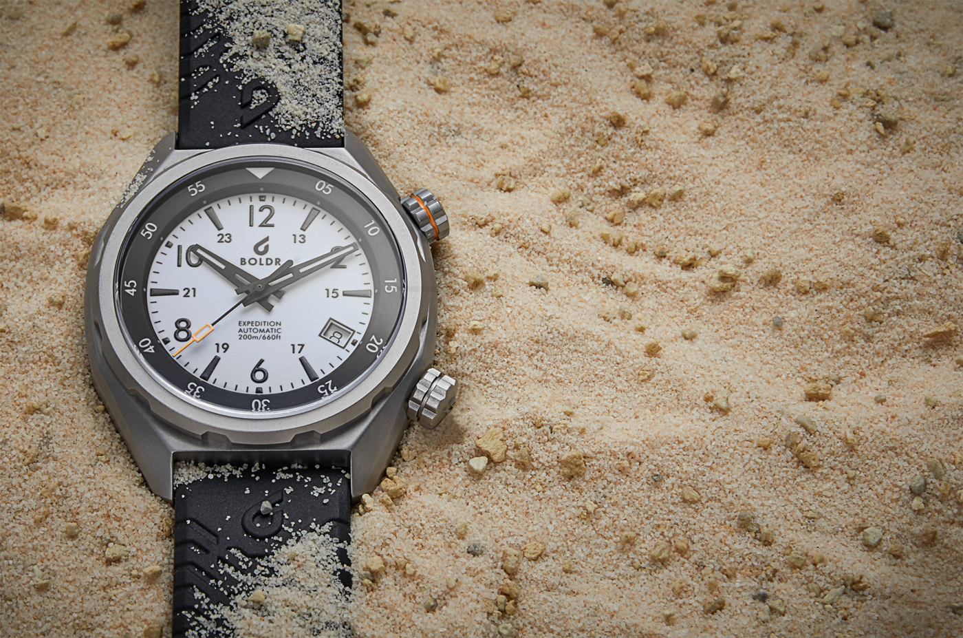Boldr Watch Expedition Eiger. Every piece is built with features that define the BOLDR brand, a blend of modern and classic design elements incorporated with horological technologies and tough, quality materials. BOLDR watches materials are handpicked for their durability and resilience, because we got tired of capitalistic consumer goods that value quantity over quality.