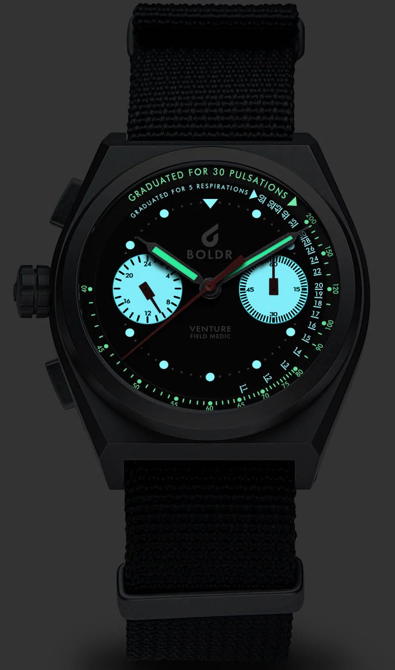 Boldr Watch Field Medic II Destro. Every piece is built with features that define the BOLDR brand, a blend of modern and classic design elements incorporated with horological technologies and tough, quality materials. BOLDR watches materials are handpicked for their durability and resilience, because we got tired of capitalistic consumer goods that value quantity over quality.