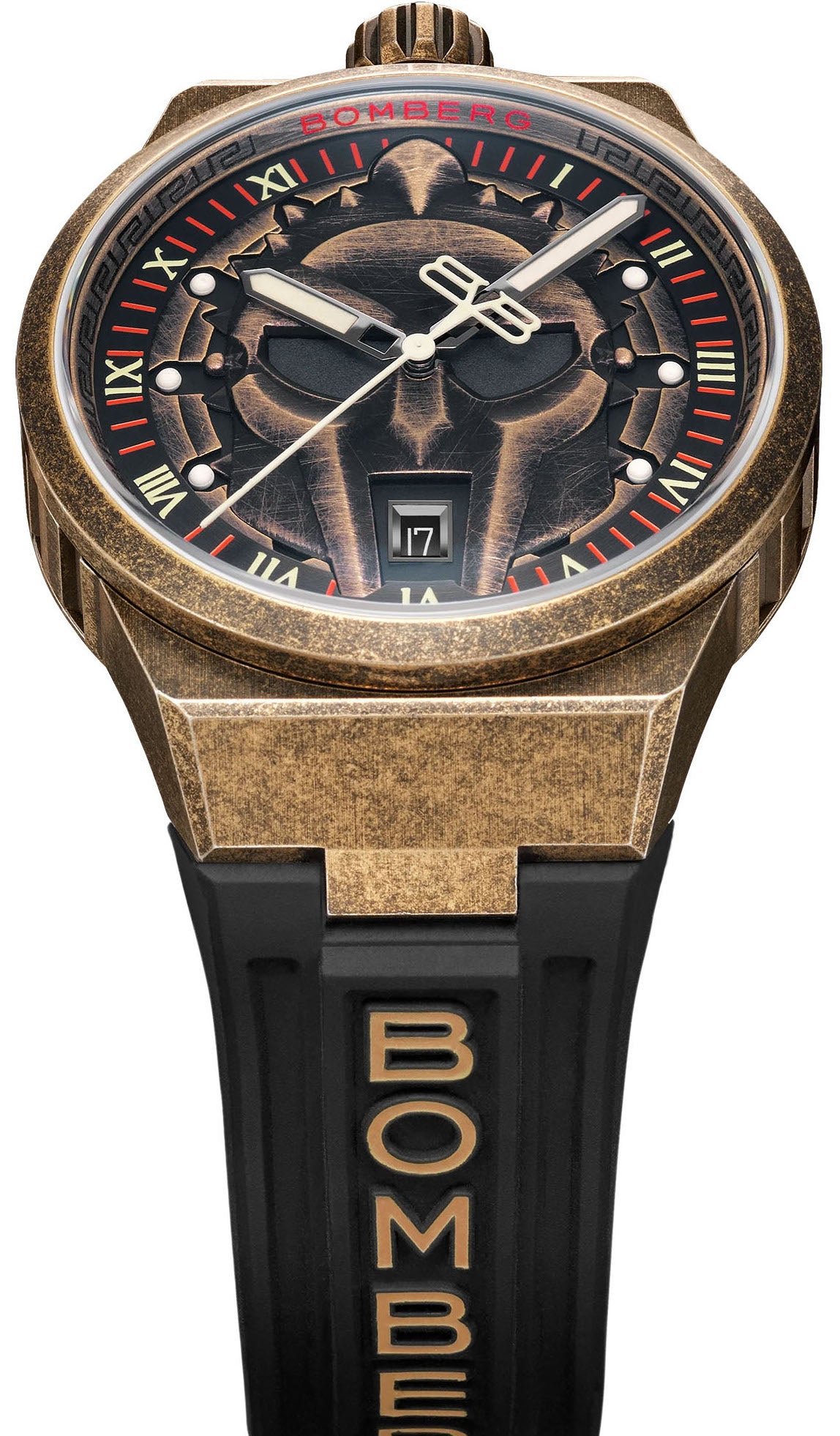 Bomberg Watch Bolt-68 Neo Spartacus Limited Edition BF43H3PBR.02-2.12. The iconic bronze helmet, the Roman numerals and the burnished bronze of the case glinting in the sun... you can almost hear the crowds cheering their heroes on, until the last man is left standing in the arena.