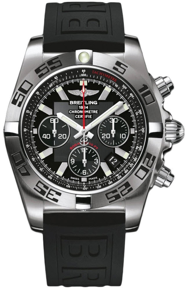 Breitling Watch Chronomat 44 Flying Fish. Embodying a perfect blend of power and performance, the Breitling watches Chronomat 44 Flying Fish special series is distinguished by its bezel featuring rubber inserts and its exclusively finished steel case. The perfect companion for feats accomplished on land, at sea and in the air, this instrument is water-resistant to 500 m (1,650 ft), while COSC chronometer certified Manufacture Breitling Caliber 01 ensures maximum precision and reliability.