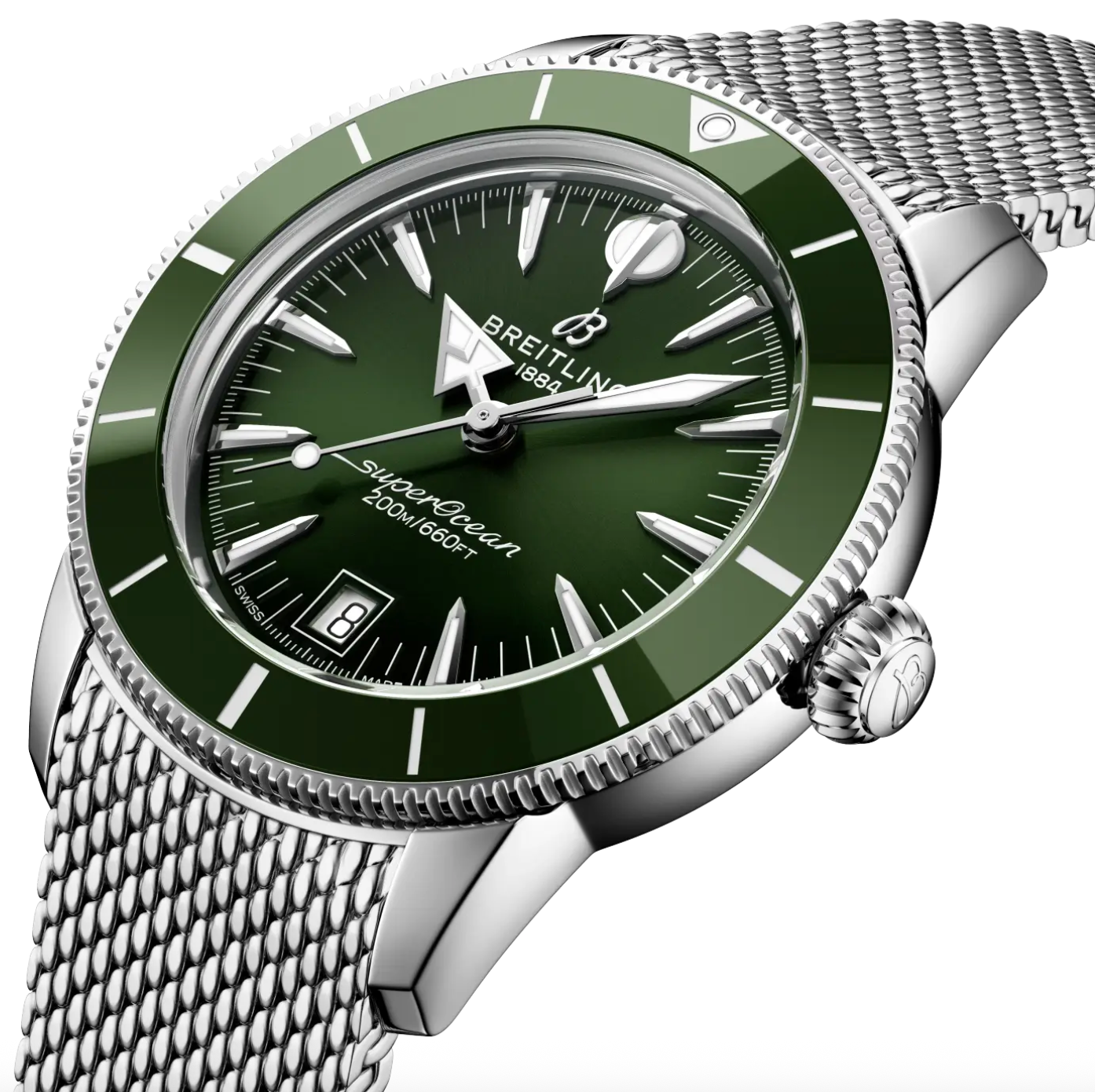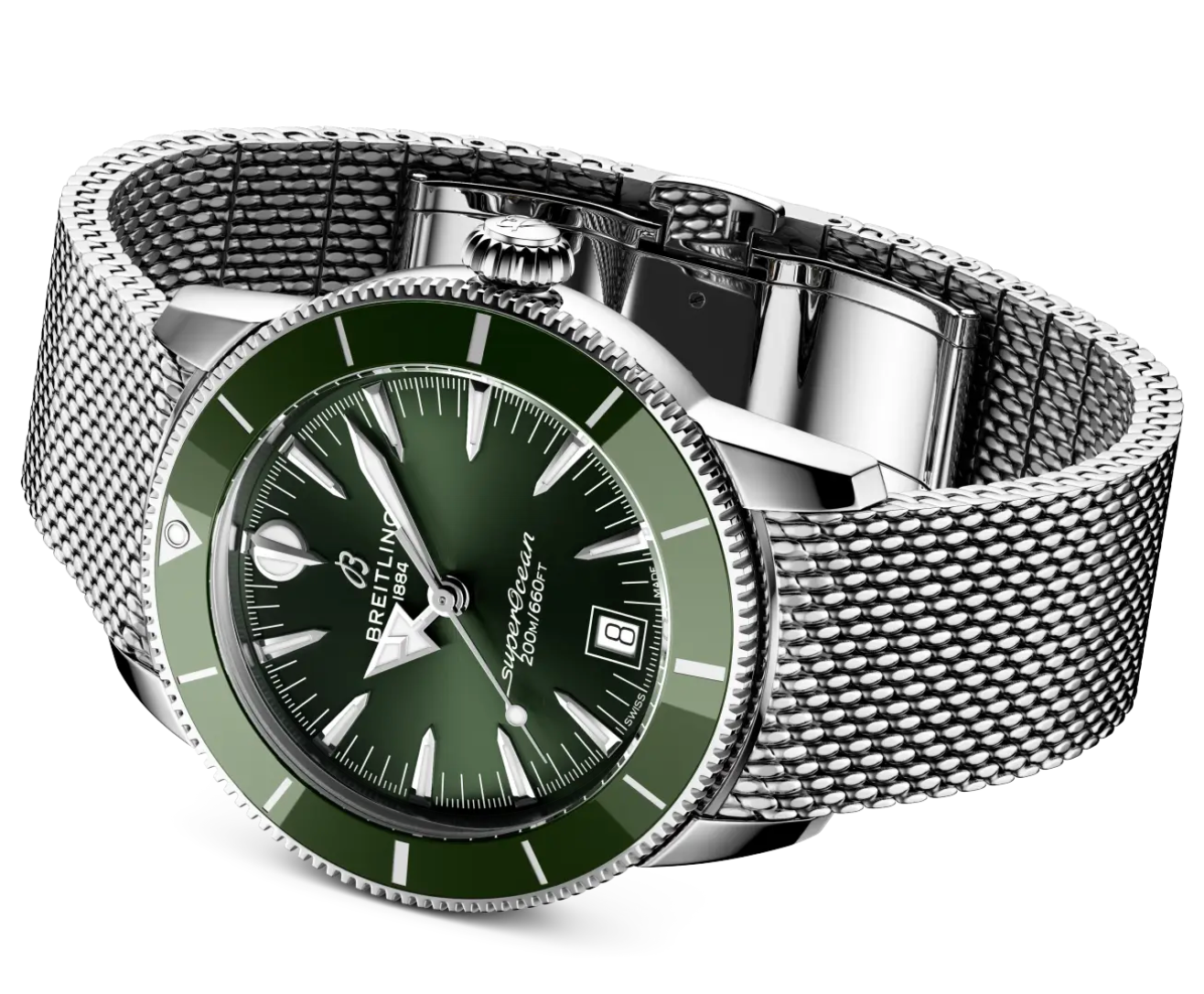 The Breitling Superocean Heritage 40 watch reference AB3110361L1A1 delivers on legibility thanks to Super LumiNova coated spear and arrow hands and crisper hour markers. A date at 6 o’clock has also been dressed against a white background. These features are protected under an anti glare sapphire crystal glass front. Underneath the dial, however, is Breitling’s first ever in house developed automatic three hander movement, the Calibre 31, which produces a useful power reserve of 78 hours once fully wound. Ensuring 24 7 comfort, the articulating links of the mesh stainless steel bracelet now reach right up to the case, while the band secures to the wrist with a newly designed butterfly clasp.