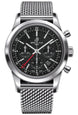 The Transocean Chronograph GMT combines an ultra-practical dual timezone system with a refined and understated design. It is distinguished by its guilloche silver or black dial adorned by applied hour-markers and finely hollowed counters. The transparent sapphire crystal provides a chance to admire the architecture of officially chronometer-certified Manufacture Breitling Caliber B04. Timeless elegance, peerless performance, unequalled user friendliness: exactly what it takes to cross fashion trends and ocean expanses with enduring style and panache.