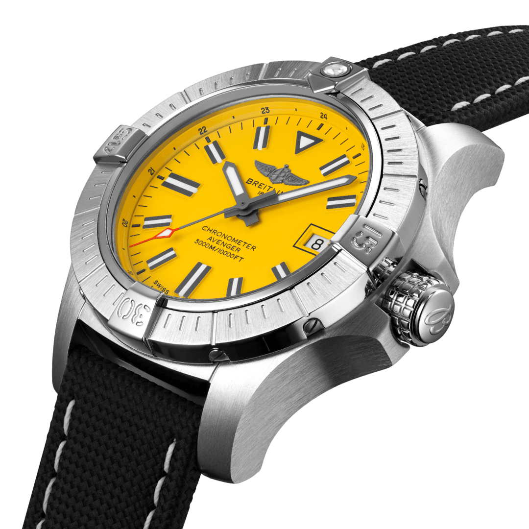 Prepared for adventurers well below the surface of the water, Breitling Avenger Seawolf watches are tough as nails and are equipped with all the key features needed for plenty of daring underwater exploration. Tailored to perform perfectly at depths underwater where the environment is pitch black, this striking yellow model from the Avenger Seawolf watch series is integrated with a staggering 3000 meter water resistance. To help you as the wearer to read time effortlessly in those circumstances, this Avenger Seawolf watch reference A17319101I1X2 features a vibrant yellow dial with chunky hands and bold hour indexes that have been treated with a generous layer of Super LumiNova.