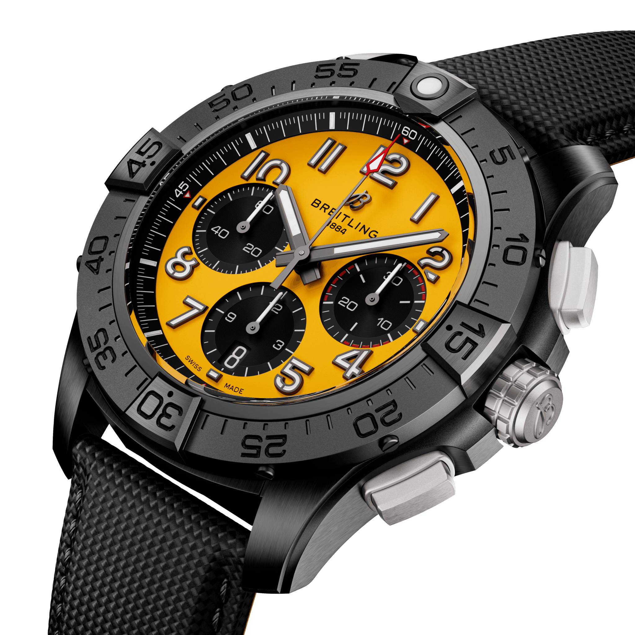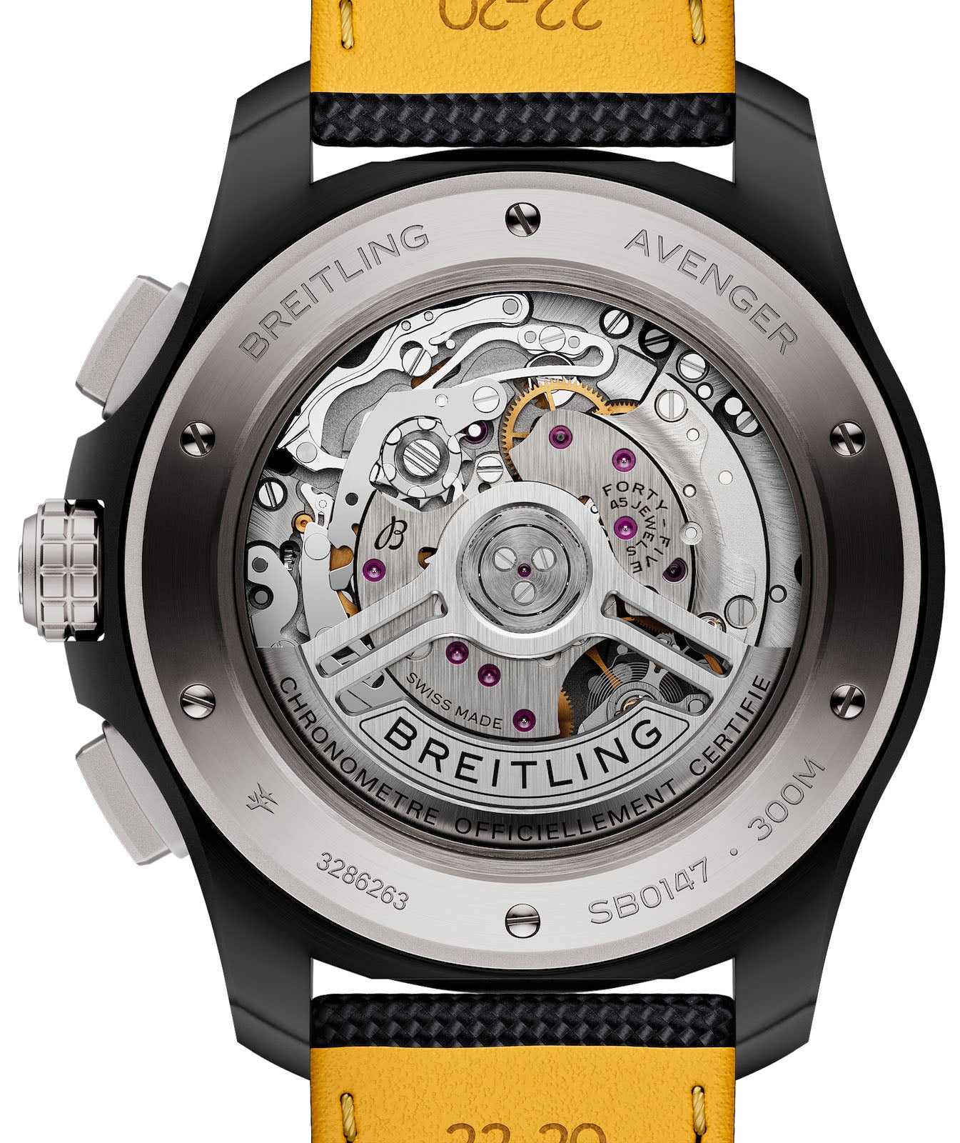 Breitling Watch Avenger B01 Chronograph 44 Night Mission Yellow SB0147101I1X2. For over 20 years, Breitlings Avenger has been at the forefront of airborne adventure. Built for jet pilots, its a watch that can take on the toughest cockpits and keep coming back for more. But you don't need air force credentials to appreciate its bold design, exceptional resilience, and next-level functionality. Get ready for the new Avenger.