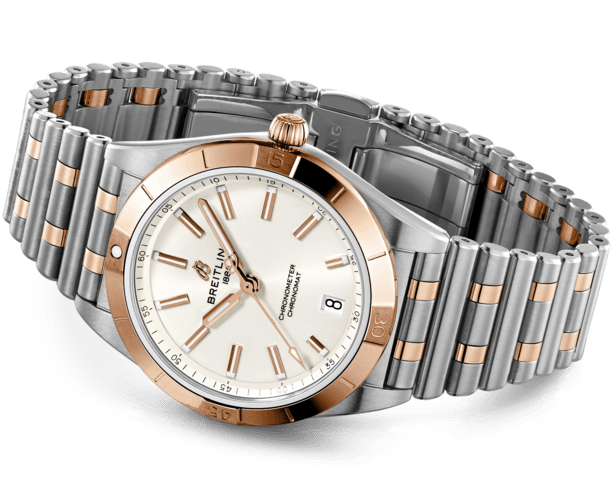 Powered by one of the brand’s automatic chronometer certified movements, the Breitling Chronomat 36 Ladies promises a precision of -4 to +6 seconds a day and an impressive power reserve of 42 hours. The Breitling 10 self-winding calibre also delivers classic central hands for hours, minutes and seconds and an elegant date window at 6 o’ clock, all beautifully presented on a crisp white dial decorated with rose gold Superluminova hands and indexes. Measuring to a feminine 36mm in size, the Chronomat 36 Ladies is executed in polished stainless steel and 18 carat rose gold, completed by a matching two-toned bracelet and scratch resistant cambered sapphire crystal glass treated with anti-reflective coating. Designed especially for trailblazers requiring only the best in performance, precision and beauty, the Chronomat 36 is the perfect Breitling watch for women.