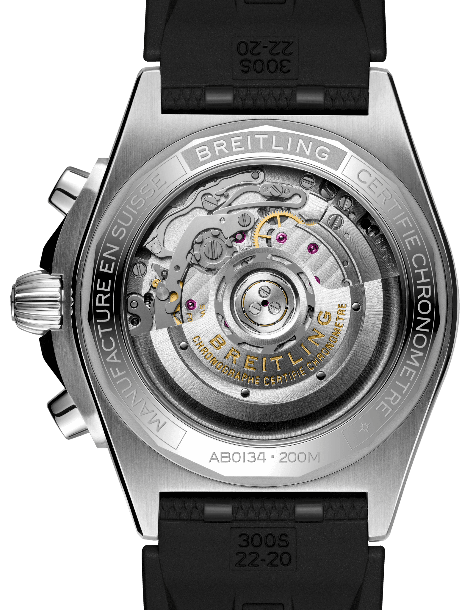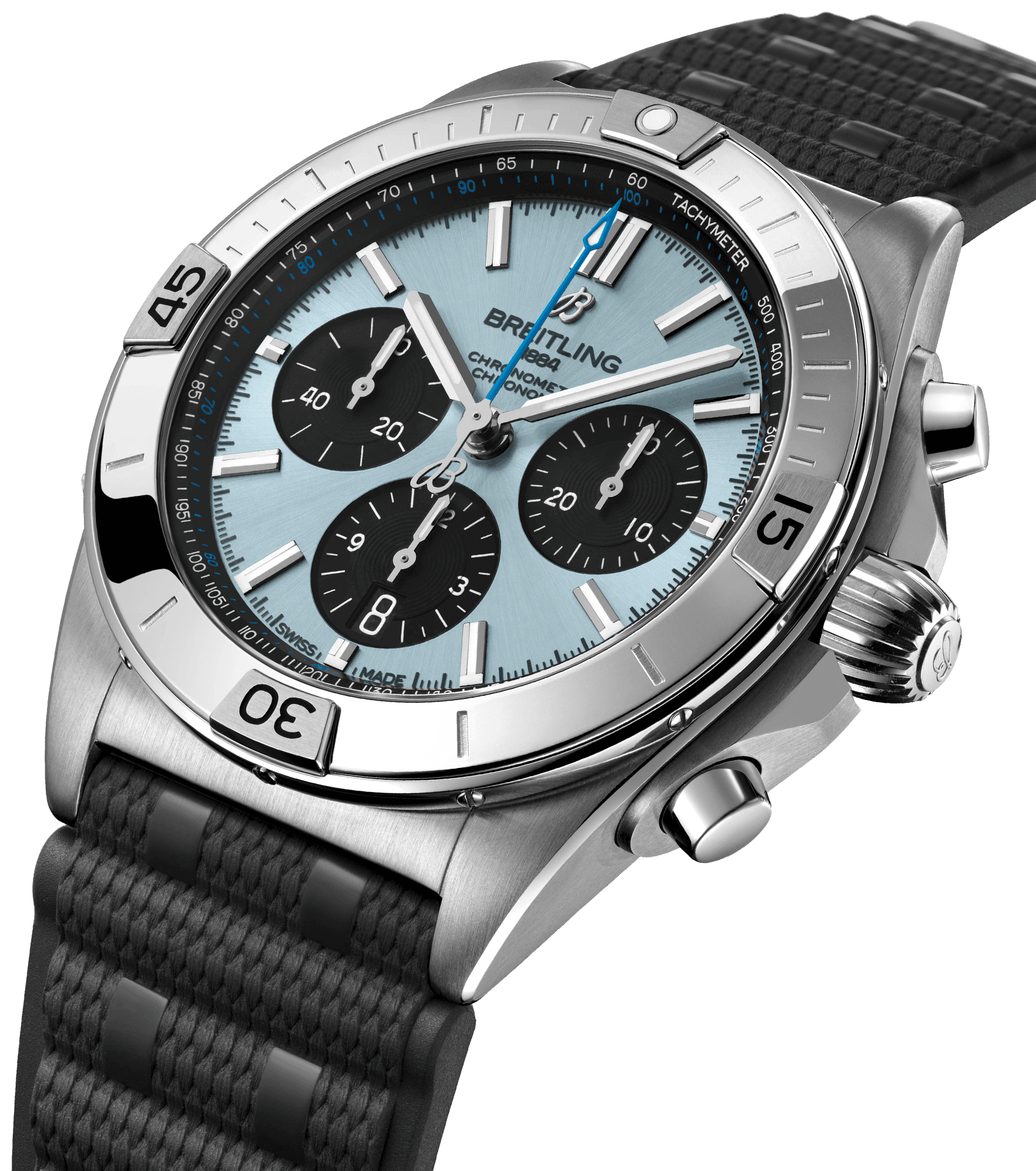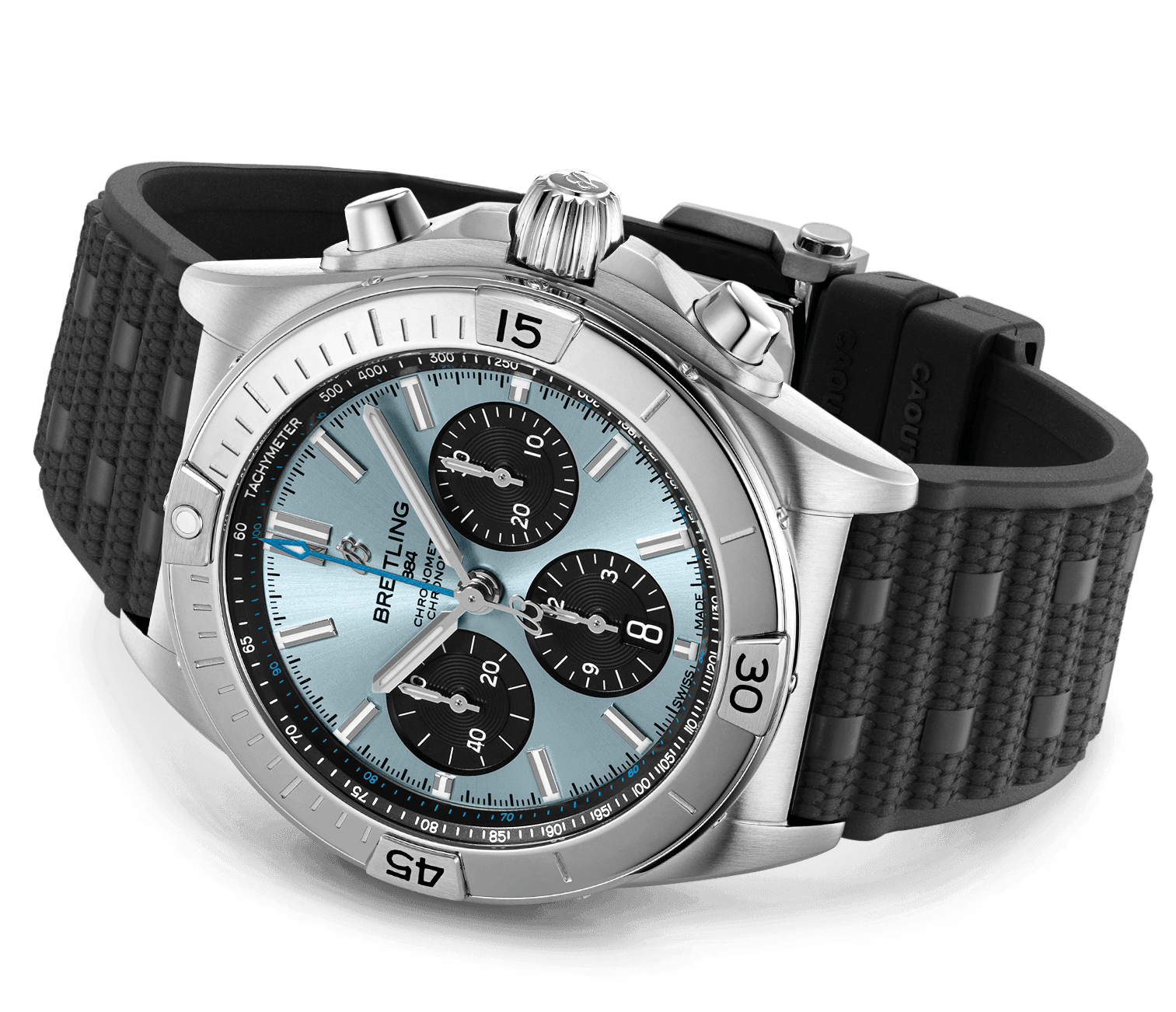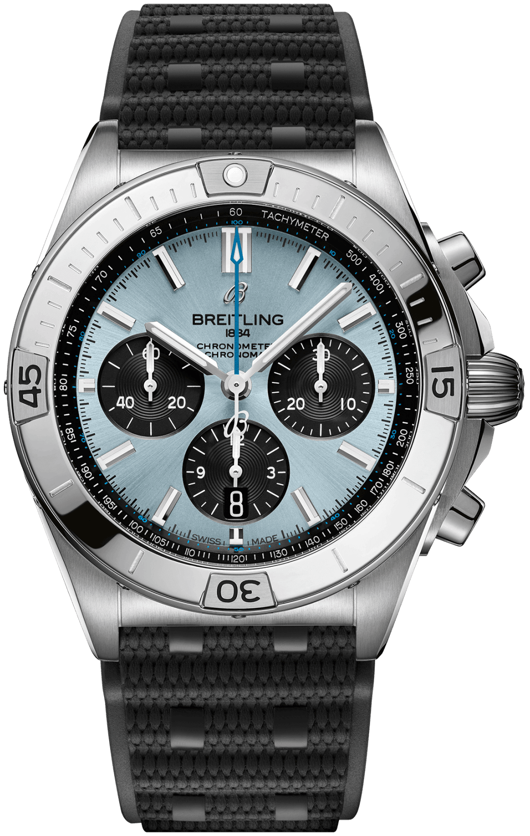 Breitling Watch Chronomat B01 42 PB0134101C1S2. Breitling’s all-purpose watch for your every pursuit. The Chronomat holds a significant place in Breitling’s history. Introduced in 1984, at a time where extra-thin quartz timepieces were the order of the day, Breitling placed a bold bet on an impressively proportioned mechanical watch. Based on the Frecce Tricolori chronograph, which had been developed and launched in 1983 in collaboration with the famed Italian aerial squadron, the Chronomat celebrated Breitling’s centenary in style and marked the return of the mechanical chronograph to its rightfully prominent place at the brand which had built its global reputation on these incredible watches. Available in a variety of materials from stainless steel to luxurious 18 k red gold, the Chronomat features a 42 mm case and the iconic bezel with the four rider tabs. Available in a range of colorful dials, the Chronomat is matched to the signature “Rouleaux bracelet in metal or rubber and is powered by the in-house Breitling Manufacture Caliber 01, a COSC-certified chronometer.