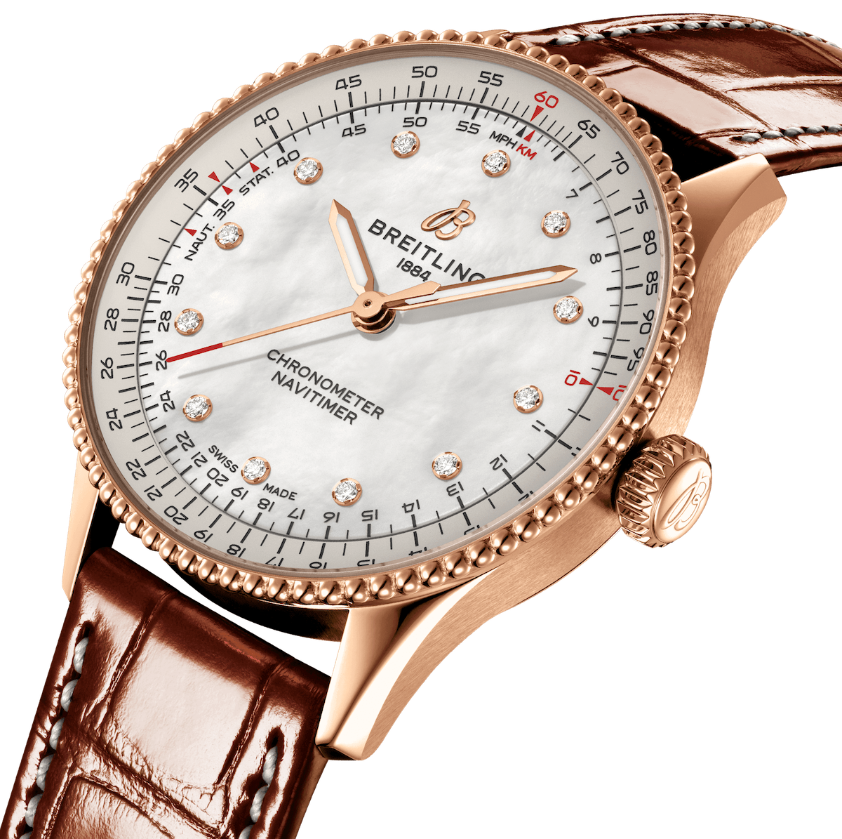 Breitling Watch Navitimer 36 Automatic Alligator R17327211A1P1. For 70 years, the Breitling Navitimer has been one of the world’s most beloved mechanical chronographs. The Navitimer family introduces a watchmaking legend to a whole new generation.