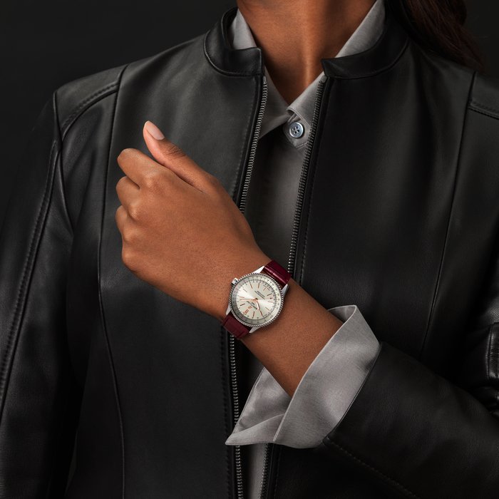 The timepiece that every female has been waiting for, the first Breitling Navitimer Ladies watch is here with an elegant 35mm stainless steel case, high precision automatic movement and a luxurious burgundy crocodile leather strap. Designed for women of style, action and purpose, this modern and feminine timepiece reflects more than 65 years of history with a graceful aesthetic directly inspired by some of the most impressive Breitling watches of the 1950’s. This Breitling ladies watch not only reflects the stylish flair of its wearer but the traditions of one of the industry’s greatest luxury watch manufacturers.