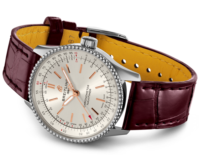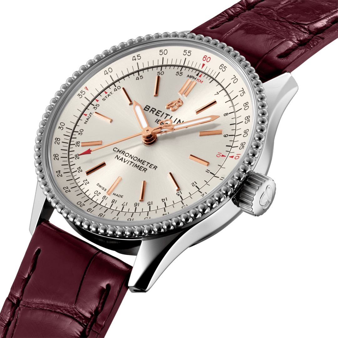 Breitling Watch Navitimer Automatic 35 Silver Burgundy Croco Tang Type