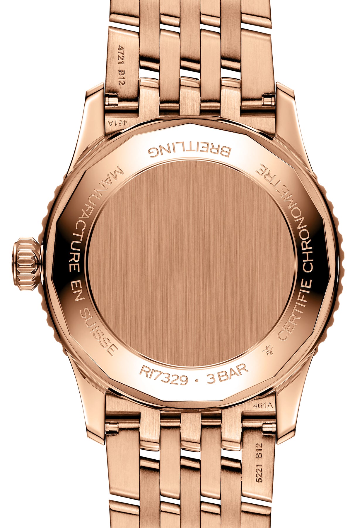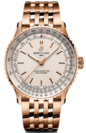 Breitling Watch Navitimer Automatic 41 18k Red Gold Bracelet R17329F41G1R1. Breitlings most versatile Navitimer for the journey. The Navitimer is one of the most recognisable watches ever made. It's on collectors lists of the greatest watches of all time. What began in 1952 as a tool for pilots has gone on to mean something profound to every single person who has had this timepiece along on their personal journey. The Navitimer Automatic and Automatic GMT 41 distill the iconic look, omitting the chronograph yet preserving a balanced dial composition. The central placement of the 24 hour scale on the GMT and the Automatics clean face, ensure the intricate slide rule stands out while streamlining the overall aesthetics. Further refining the collection, the notched bezel was incorporated for a contemporary touch, and alternating polished and brushed finishes add a dynamic play of light. This reinvention of the Navitimer, marrying the classic with the contemporary, is tailored for enthusiasts and the style conscious alike, promising Breitling's commitment to heritage and innovation in each timepiece.