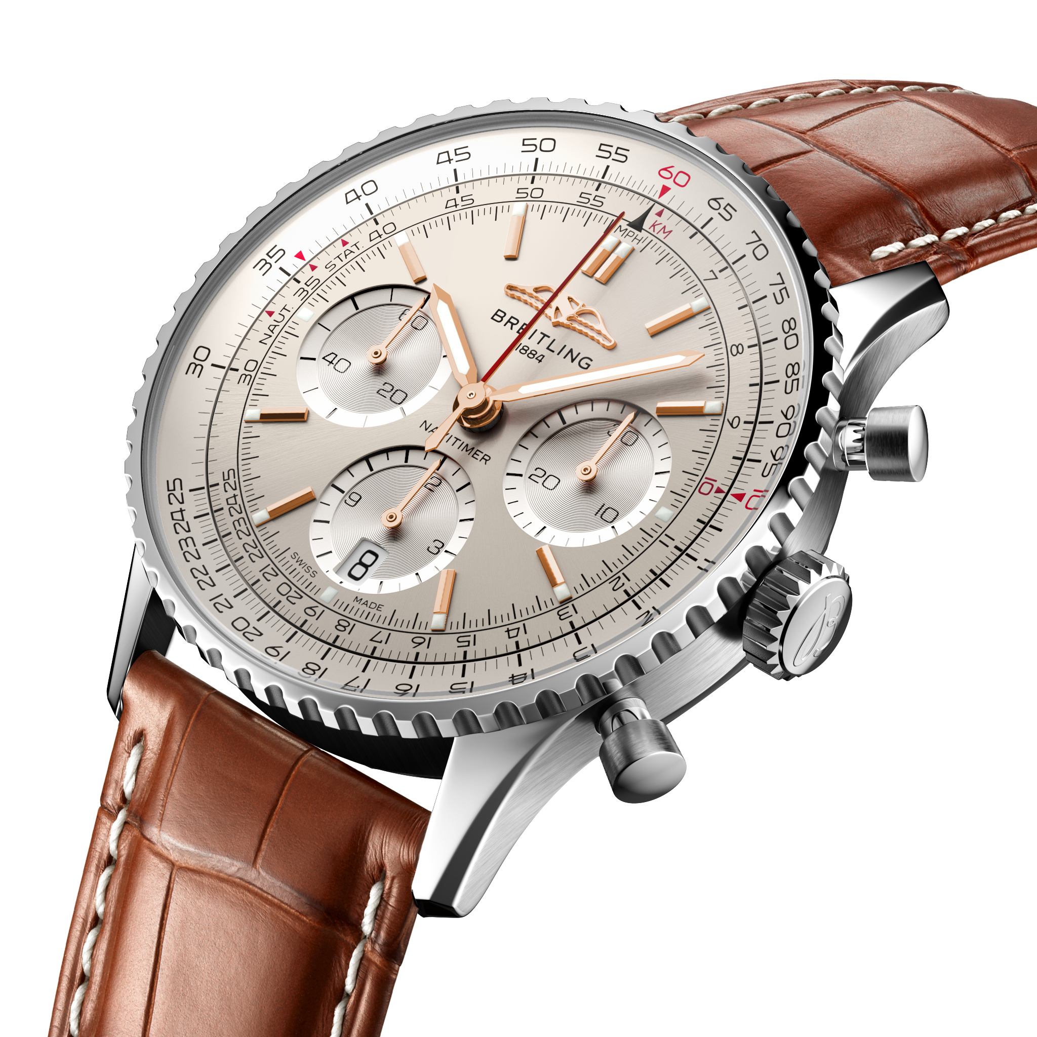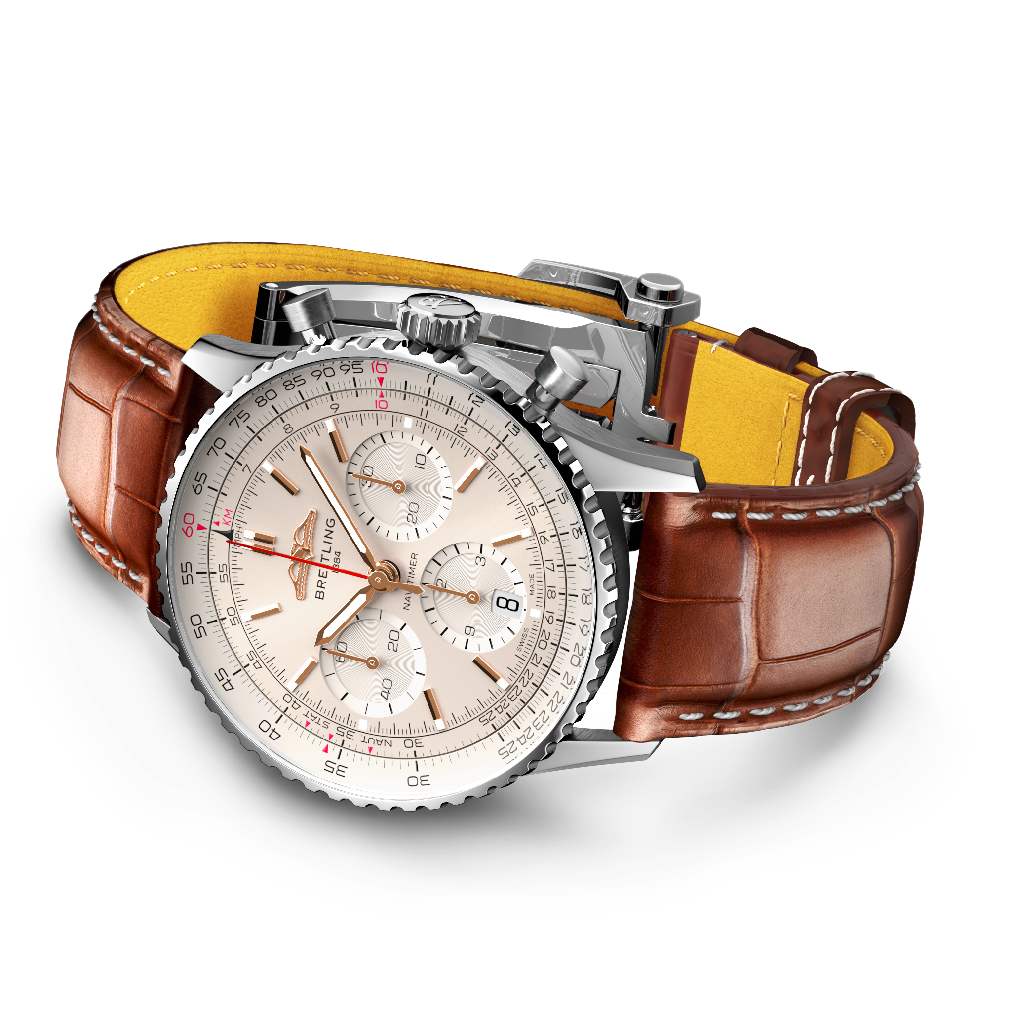 Breitling Watch Navitimer B01 Chronograph 41 Gold Croc Folding Clasp AB0139211G1P1. For more than 65 years, the Breitling Navitimer has been one of the worlds most beloved mechanical chronographs. The Navitimer family introduces a watchmaking legend to a whole new generation.