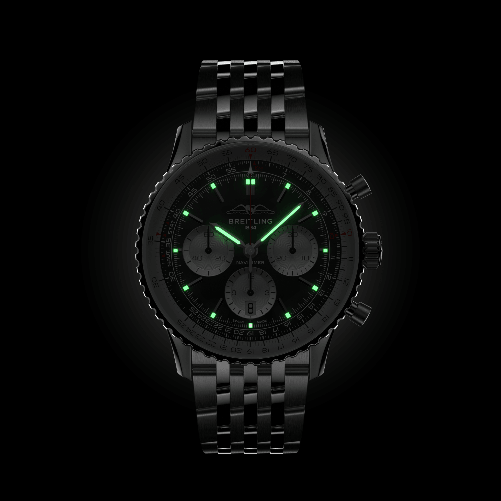 Breitling Watch Navitimer B01 Chronograph 43 Bracelet AB0138211B1A1. For more than 65 years, the Breitling Navitimer has been one of the worlds most beloved mechanical chronographs. The Navitimer family introduces a watchmaking legend to a whole new generation.