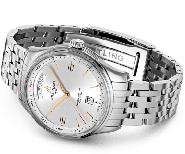 The ultimate Breitling dress watch, the Breitling Premier Automatic Day and Date 40 has been reincarnated from the 1940’s to bring some much-needed elegance and sophistication to their collections. It has been designed to stand out from the oversaturation of diver and pilot watches and add a touch of glamour and grace to the wrists of the highly sophisticated. It’s 40mm stainless steel case moulds beautifully to the wrist while the stainless steel bracelet and folding clasp attach with ease.