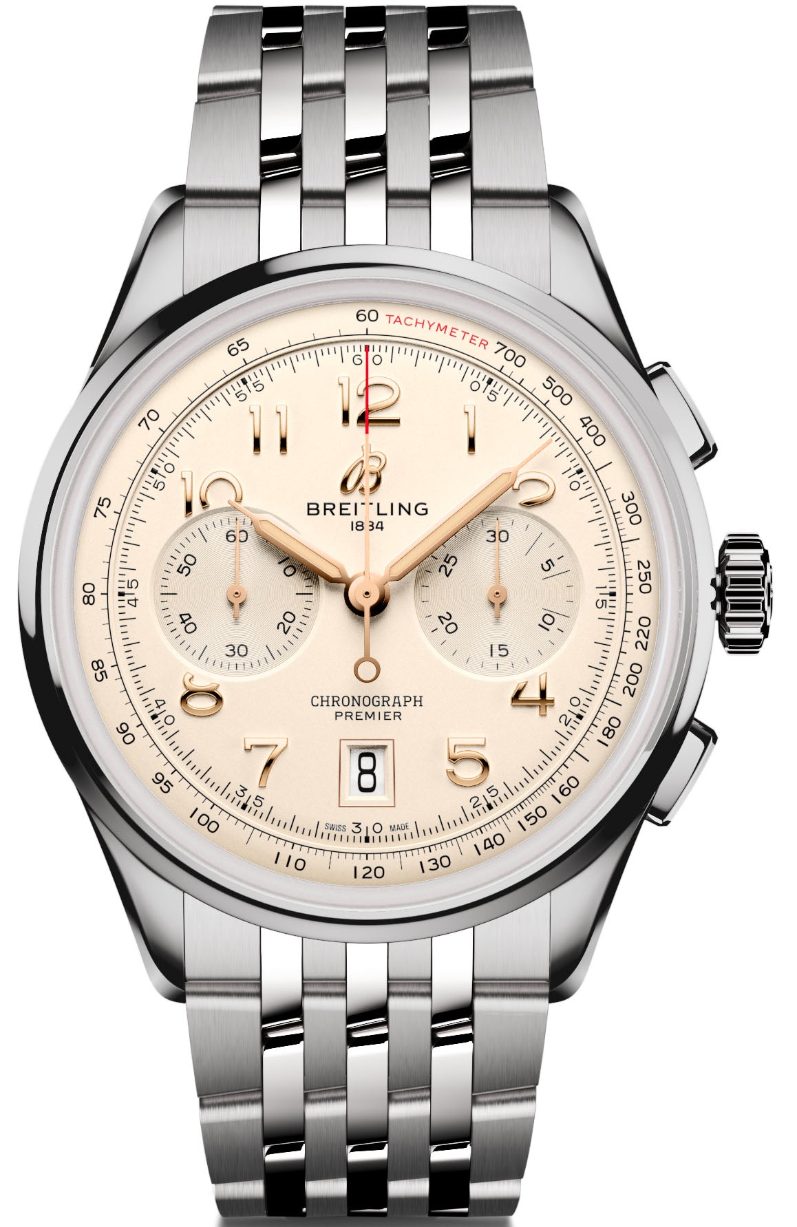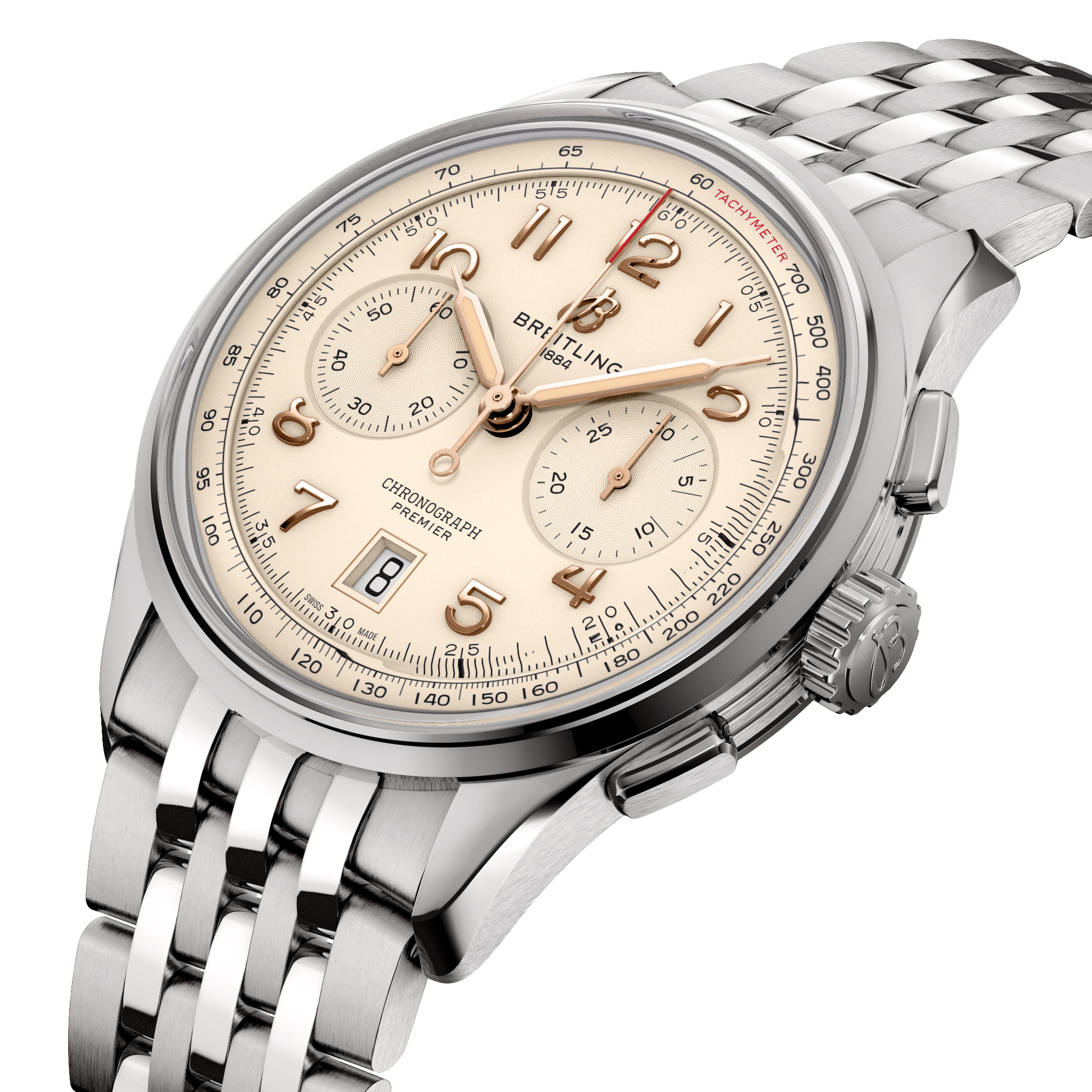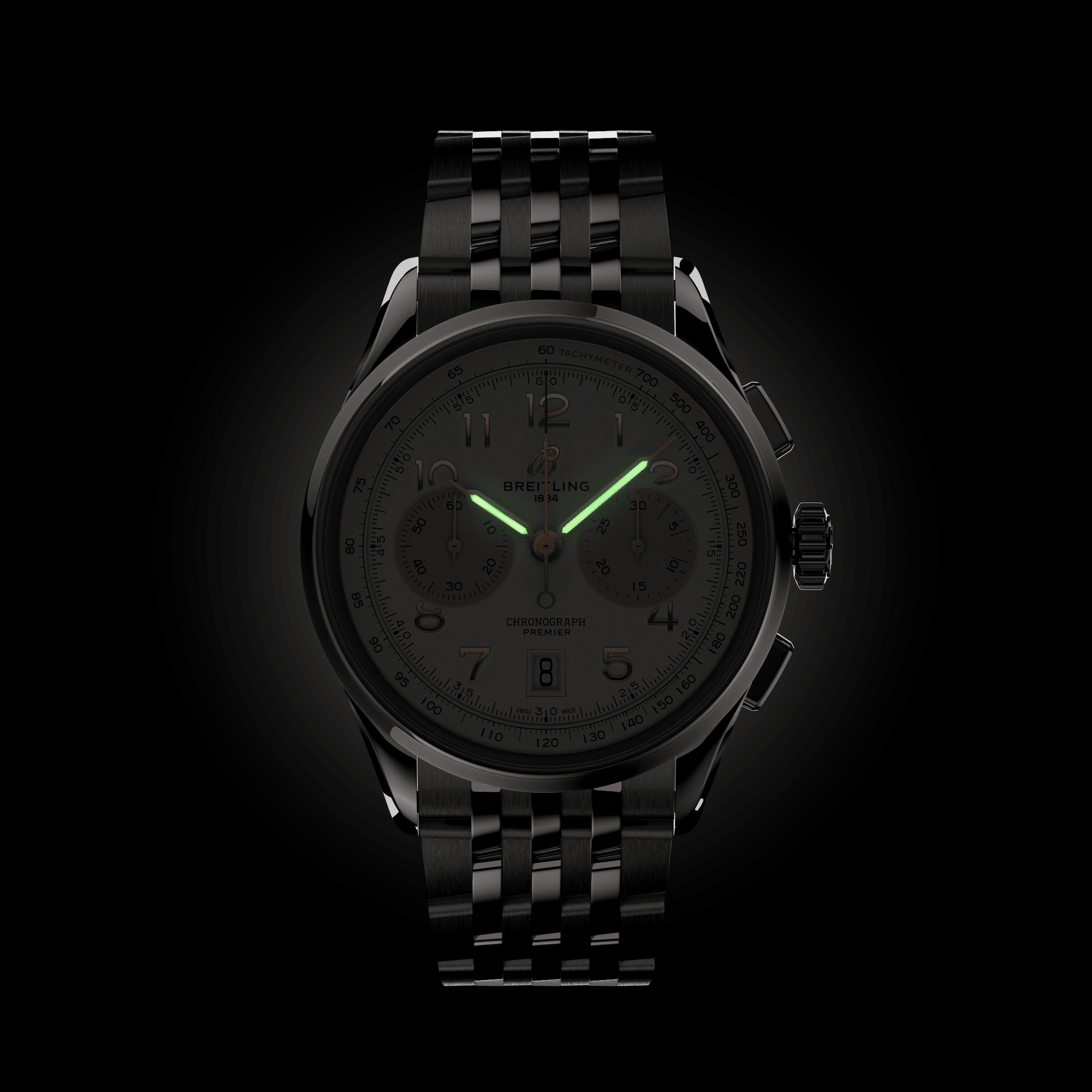 Breitling Watch Premier B01 Chronograph 42 AB0145211G1A1. In the early 1940s, Willy Breitling was already dreaming of a time after the war, when utility would give way to unbridled optimism. He began designing a chronograph that would be functional but also undeniably elegant and infinitely wearable—in his words, “the unmistakable stamp of impeccable taste. He called this new line the Premier. To create its modern Premier, Breitling preserved distinctive vintage-Premier details, including the smooth fixed bezel, twin-register dial, streamlined rectangular pushers and applied Arabic numerals. The Premier B01 Chronograph 42 is available in an array of dial colors and case materials. It comes on a choice of classic alligator leather strap or sleek 7-row metal bracelet. Today’s Premier also lives up to Willy Breitling’s uncompromising technical standards with its exceptional self-winding movement—the COSC-certified Breitling Manufacture Caliber 01—designed for maximum precision, reliability and functionality.