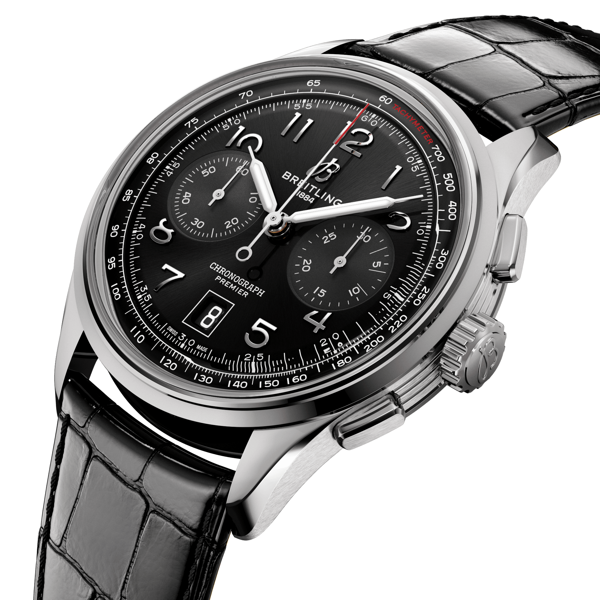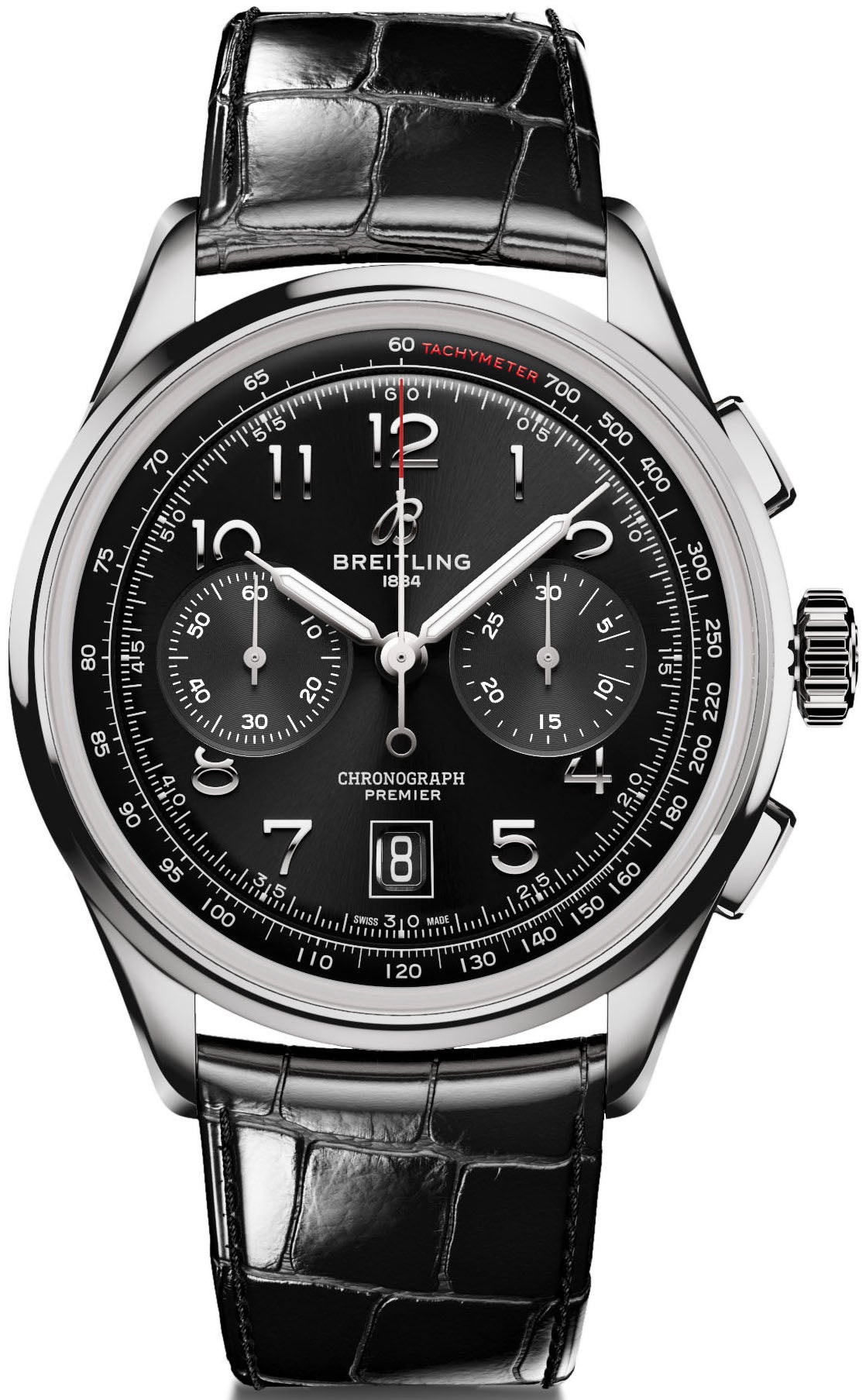 Breitling Watch Premier B01 Chronograph 42 AB0145221B1P1. In the early 1940s, Willy Breitling was already dreaming of a time after the war, when utility would give way to unbridled optimism. He began designing a chronograph that would be functional but also undeniably elegant and infinitely wearable—in his words, “the unmistakable stamp of impeccable taste. He called this new line the Premier. To create its modern Premier, Breitling preserved distinctive vintage-Premier details, including the smooth fixed bezel, twin-register dial, streamlined rectangular pushers and applied Arabic numerals. The Premier B01 Chronograph 42 is available in an array of dial colors and case materials. It comes on a choice of classic alligator leather strap or sleek 7-row metal bracelet. Today’s Premier also lives up to Willy Breitling’s uncompromising technical standards with its exceptional self-winding movement—the COSC-certified Breitling Manufacture Caliber 01—designed for maximum precision, reliability and functionality.