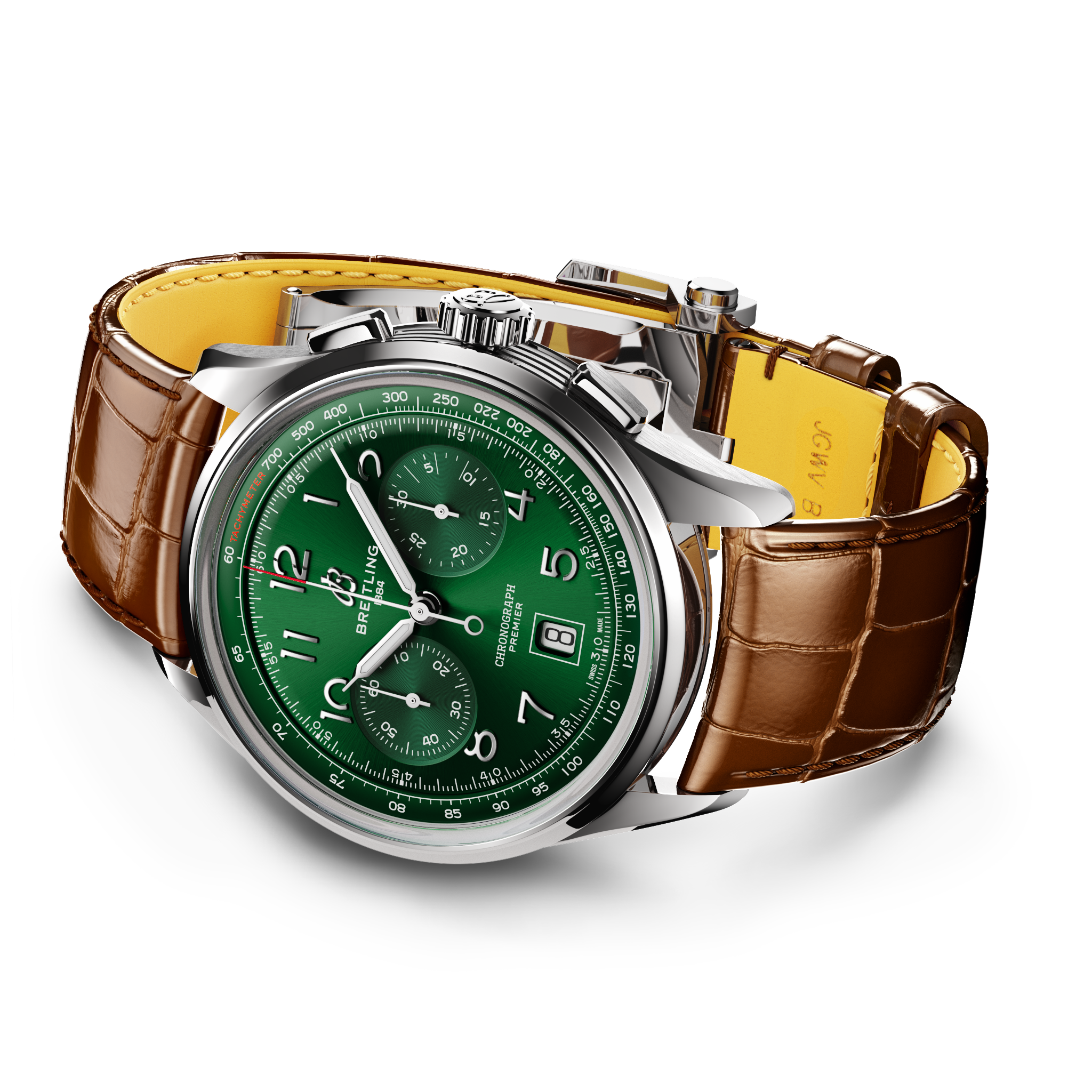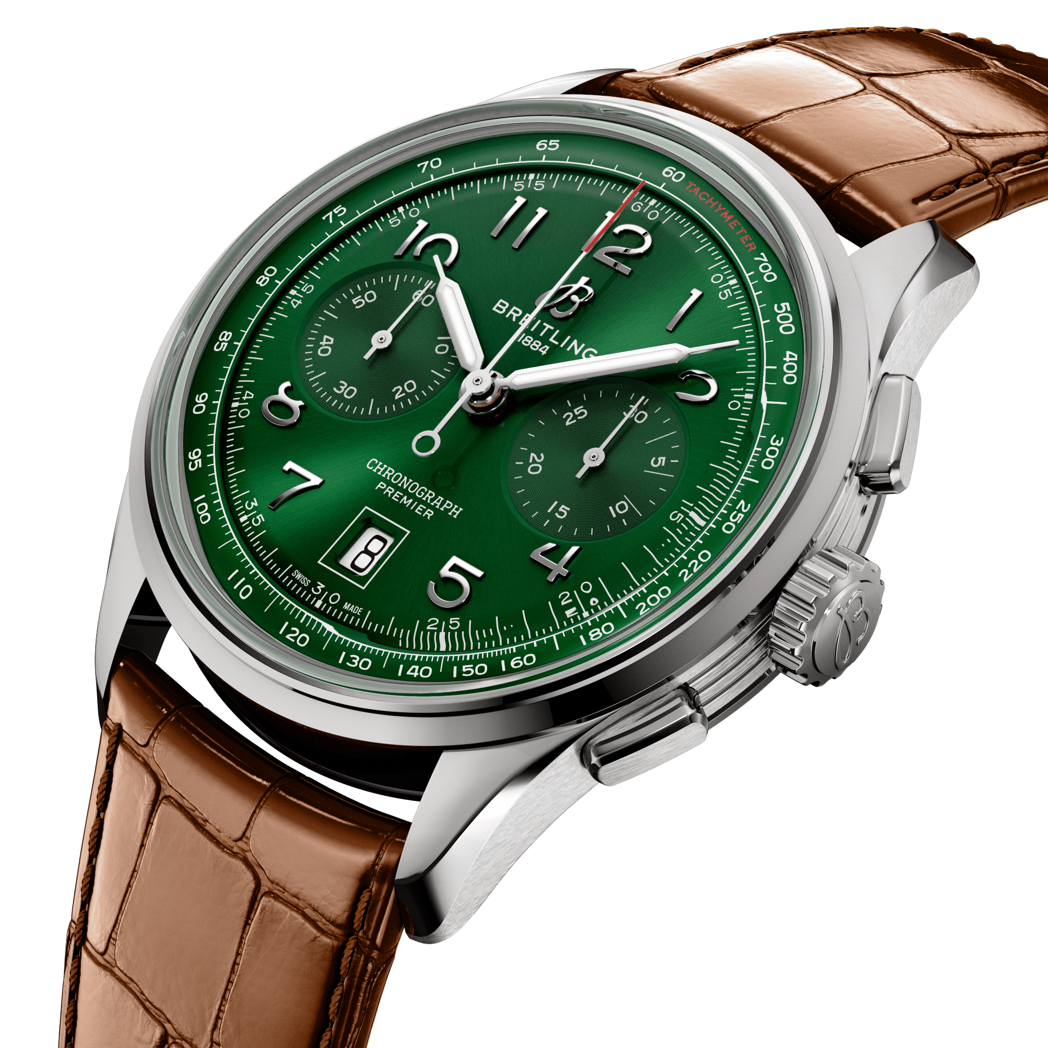 Breitling Watch Premier B01 Chronograph 42 AB0145371L1P1. In the early 1940s, Willy Breitling was already dreaming of a time after the war, when utility would give way to unbridled optimism. He began designing a chronograph that would be functional but also undeniably elegant and infinitely wearable—in his words, “the unmistakable stamp of impeccable taste. He called this new line the Premier. To create its modern Premier, Breitling preserved distinctive vintage-Premier details, including the smooth fixed bezel, twin-register dial, streamlined rectangular pushers and applied Arabic numerals. The Premier B01 Chronograph 42 is available in an array of dial colors and case materials. It comes on a choice of classic alligator leather strap or sleek 7-row metal bracelet. Today’s Premier also lives up to Willy Breitling’s uncompromising technical standards with its exceptional self-winding movement—the COSC-certified Breitling Manufacture Caliber 01—designed for maximum precision, reliability and functionality.