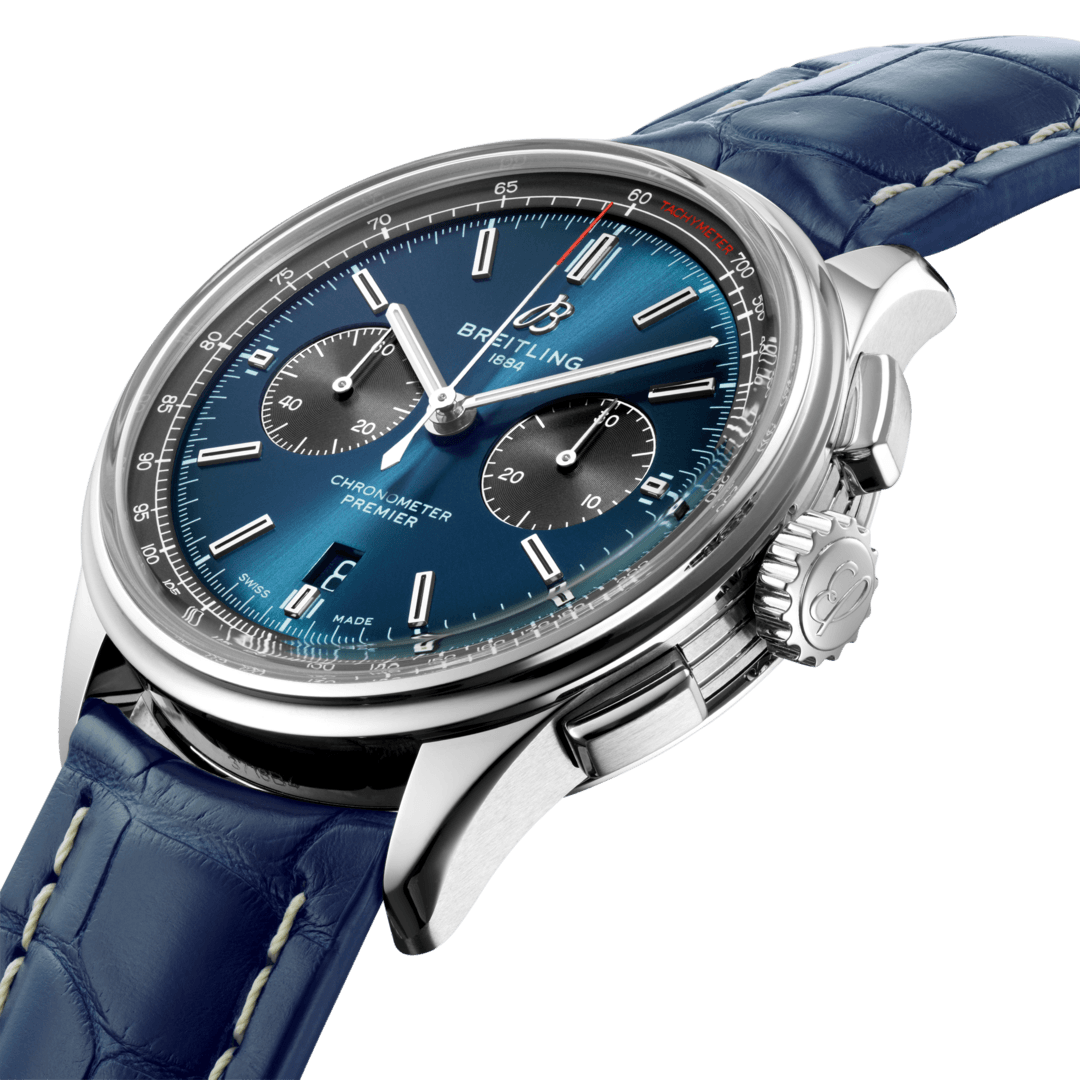 Breitling Watch Premier B01 Chronograph 42 Blue Croco Folding. AB0118A61C1P1