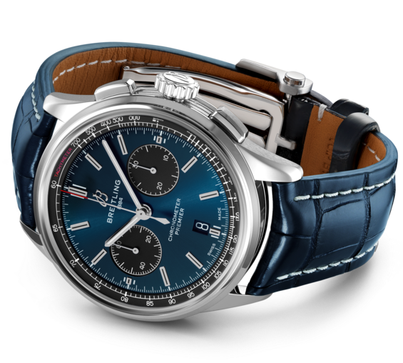 Breitling Watch Premier B01 Chronograph 42 Blue Croco Folding Clasp