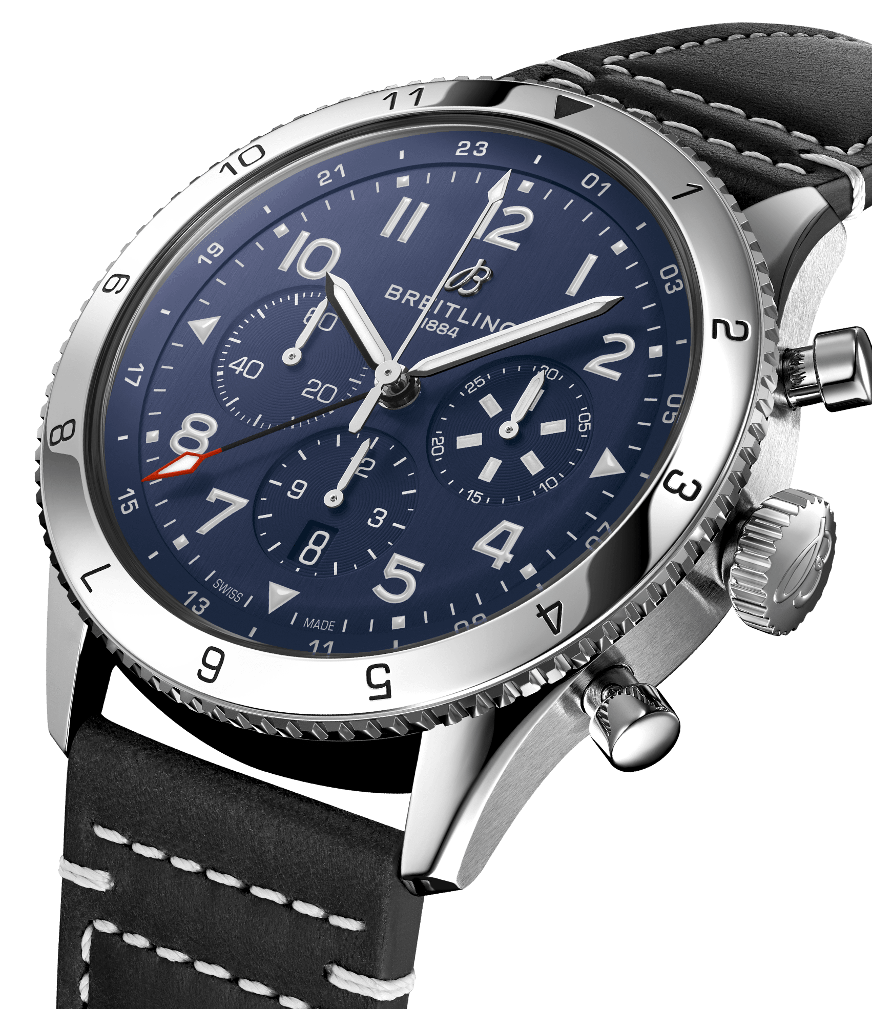 Inspired by the Swiss watch brand’s legendary AVI Ref. 765 watch, the Breitling Super AVI watch collection tributes four legendary planes and their unique liveries including the Vought F4U Corsair, a WWII naval aircraft designed to make tricky take-offs and landings from carriers and remote landing strips. The Breitling Super AVI B04 Chronograph GMT 46 Vought F4U Corsair watch brings to life the aircraft’s iconic uniform through a navy blue dial adorned with matching blue counters and silver hardware.