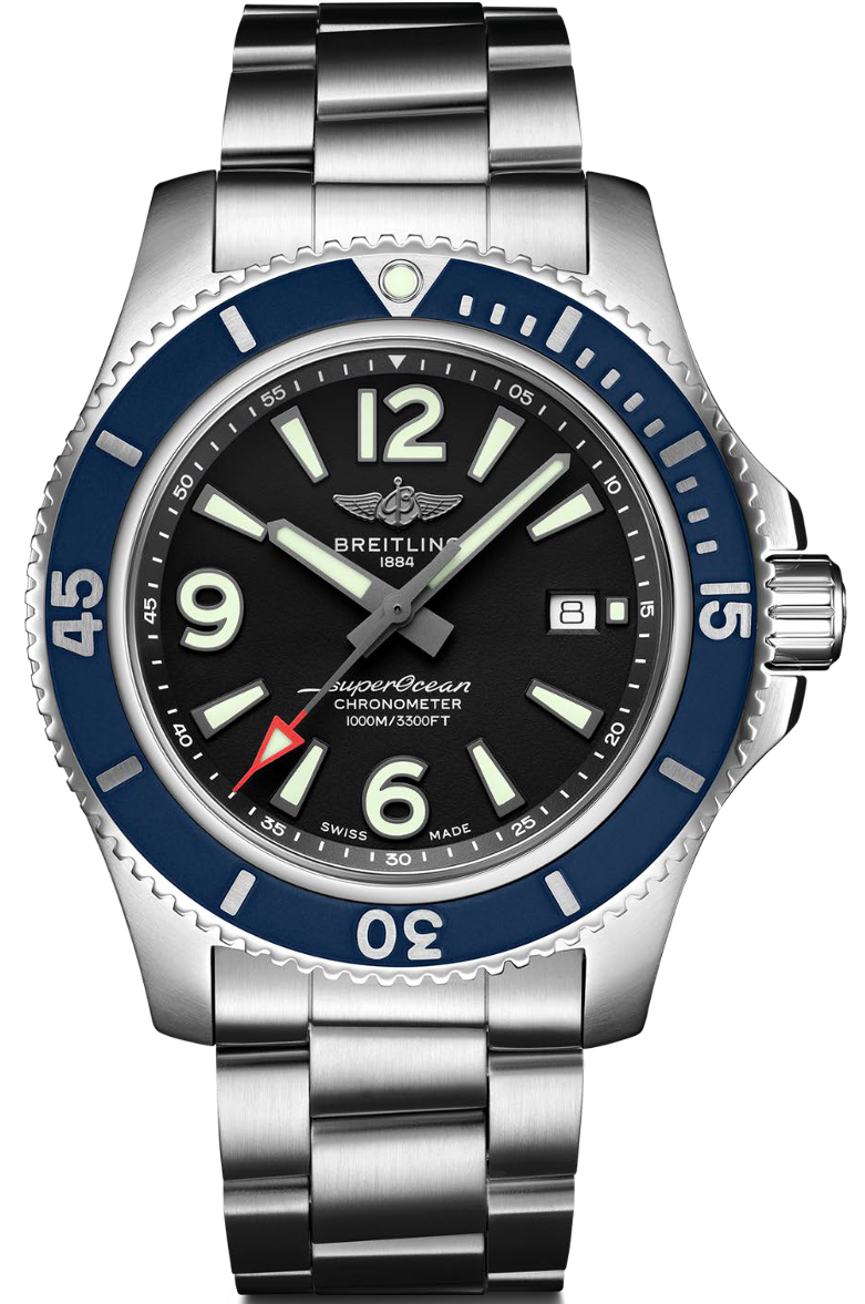 Breitling Watch Superocean Automatic 44 Bracelet UK Special Edition A1736781B1A1. Bold and sporty, the Superocean Automatic 44 is designed for men looking for a sports watch combining serious performance with contemporary style. Not only ready for the challenges of the deep seas (up to 100 bar / 1000 meters), the fresh and sporty Superocean Automatic 44 will also attract those whose adventures are a little closer to the shore.