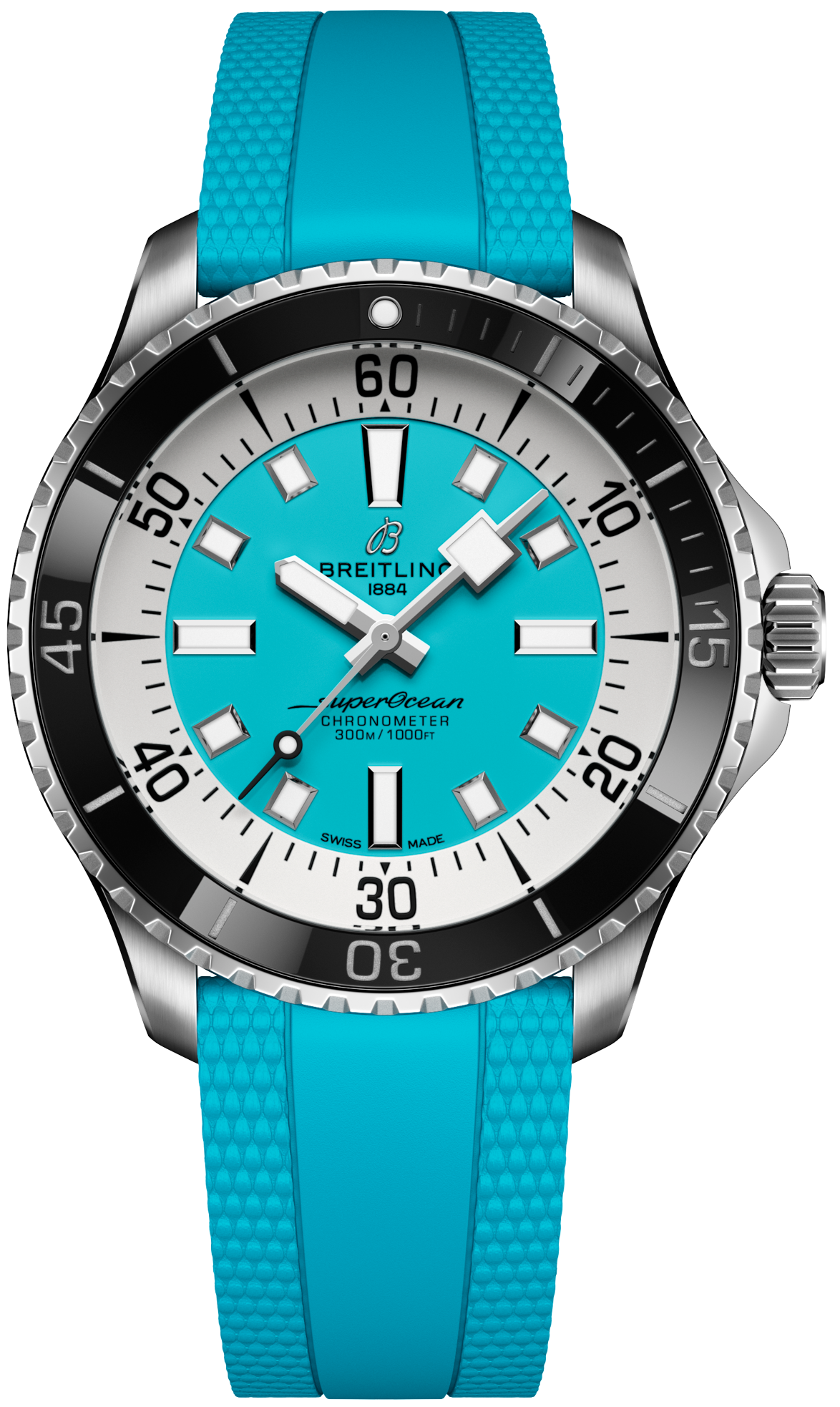 Breitling Watch Superocean III Automatic 44 A17376211L2S2. Performance and style for all your water-based pursuits. In the 1960s, the new sport of scuba diving was all the rage. For divers, timing was everything, and Breitling set out to give them the most clear-cut dive watch possible by eliminating any feature that didn't support their lifesaving needs underwater. This pared-down watch was named the Slow Motion. What remained were clean lines, chunky luminescent indexes, squared-off hands and a high-contrast dial ring, all aimed at maximum legibility. Practical, yes. But what people really fell in love with was the look.
