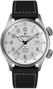 - Silver dial with stencil Arabic numerals