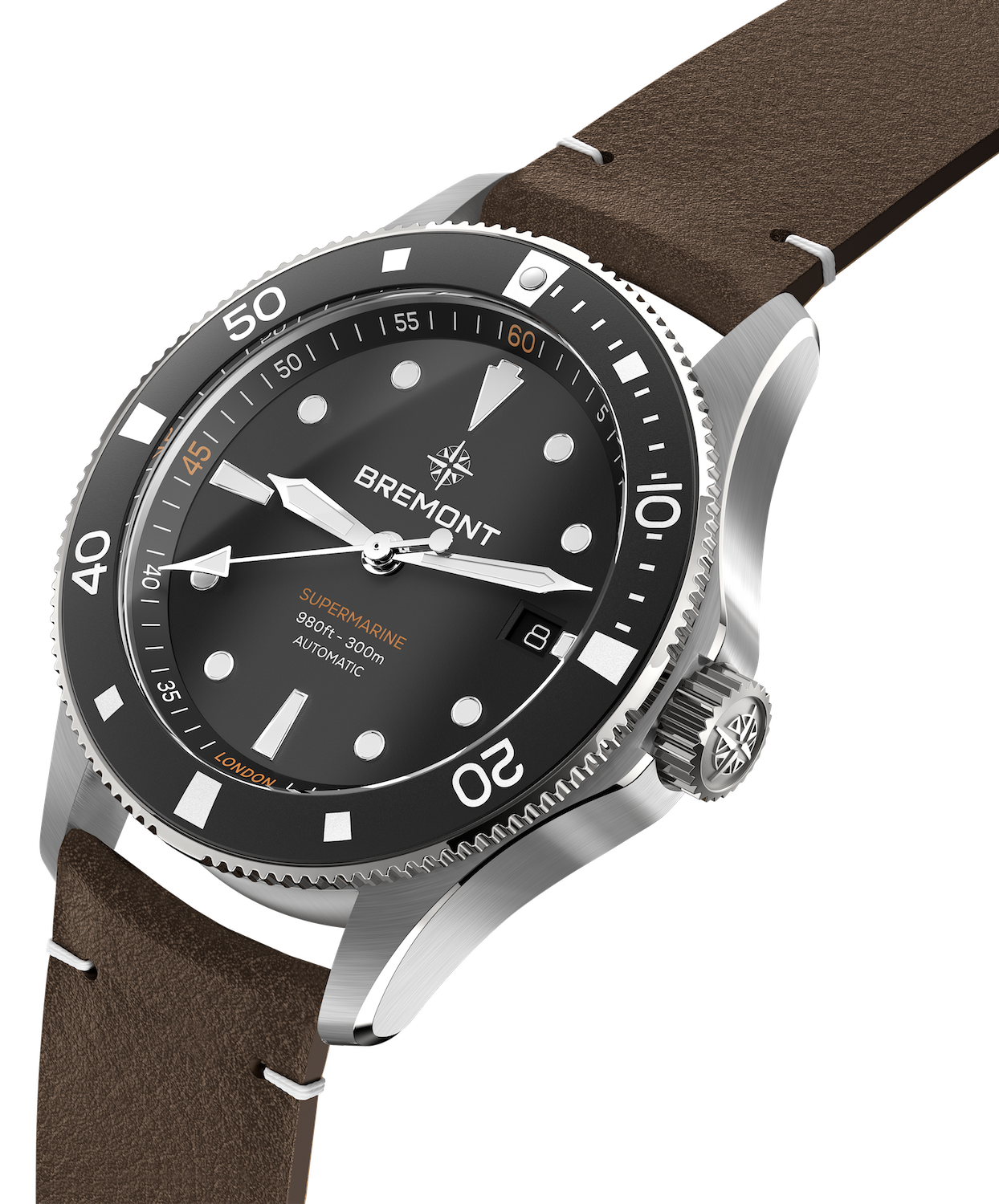 Bremont Watch Supermarine 300M Date Black Leather SM40-DT-SS-BK-L-S. Over the years, Bremont has developed its Supermarine diving watch collection to the exacting specifications required for professional divers and military personnel, working with the likes of the Royal Navy Clearance Divers, Special Forces Units, North Sea Deep Sea Divers and the Royal Marines. Bremont has also worked closely with open water swimmers, free divers, scuba divers and professional sailing teams to ensure our watches can be relied upon in any marine environment. We are proud to have created a collection of watches which is relied on by the best.