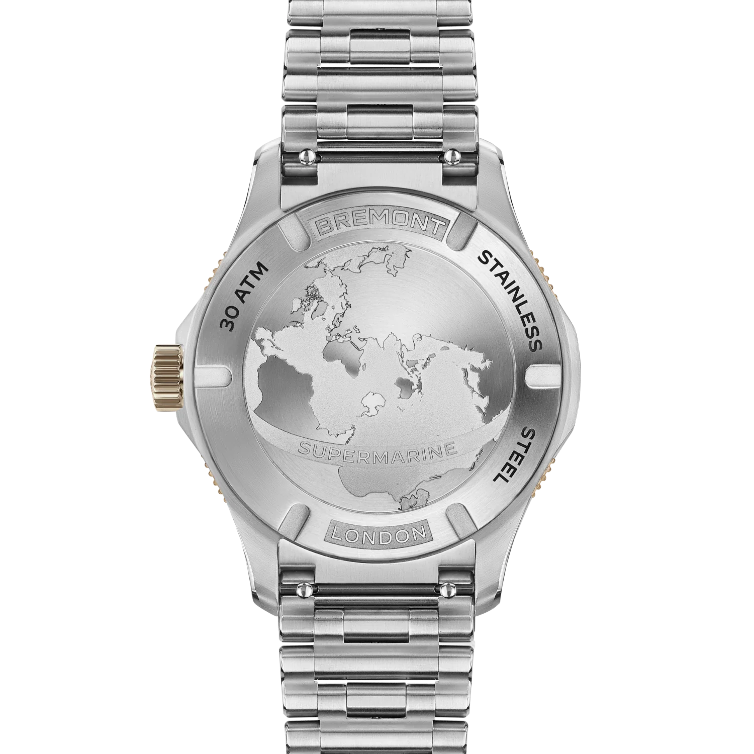 Bremont Watch Supermarine 300M Date Brown Bracelet SM40-DT-BI-BR-B. The Supermarine 300m and 300m Date models have been entirely redesigned and now feature a new, sleeker and slimmer profile case shape crafted in 904L steel to maximise robustness and comfort in unison.
