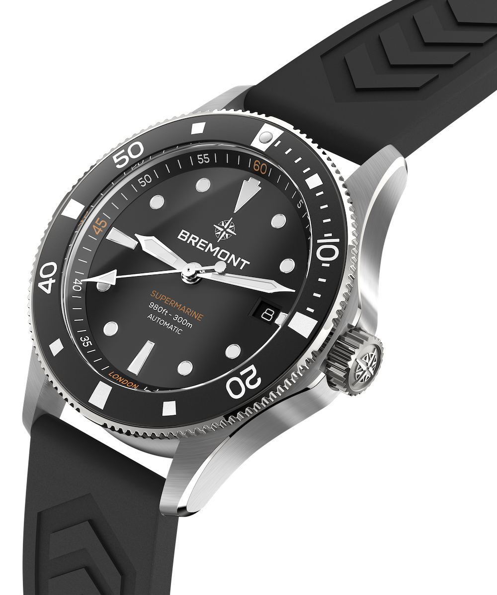 Bremont Watch Supermarine 300M Date Black Rubber SM40-DT-SS-BK-R-S. Over the years, Bremont has developed its Supermarine diving watch collection to the exacting specifications required for professional divers and military personnel, working with the likes of the Royal Navy Clearance Divers, Special Forces Units, North Sea Deep Sea Divers and the Royal Marines. Bremont has also worked closely with open water swimmers, free divers, scuba divers and professional sailing teams to ensure our watches can be relied upon in any marine environment. We are proud to have created a collection of watches which is relied on by the best.