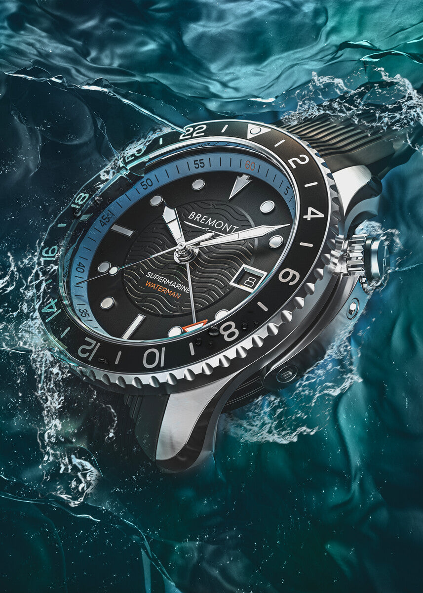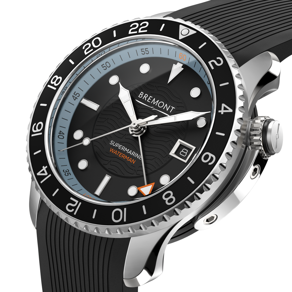 Bremont Watch Waterman Apex II GMT Rubber Limited Edition W-APEXII-BKR-S. Tried & tested by legendary big-wave surfer and all round waterman Laird Hamilton, the Waterman Apex II is a highly technical dive watch incorporating an automatic helium escape valve and crown protector, as well as boasting a 50-hour power reserve with GMT and date functionality.