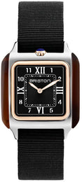 Briston Streamliner Kennedy HM Black Watch 252030.PRA.T.1.NB. The Streamliner Kennedy collection perfectly blends modernity and heritage. The watch features a refined square case with acetate sides, symmetrical lines and a crown at twelve o'clock (except for the chronograph model) adorned with a lapis lazuli cabochon. Its name evokes the timeless elegance and casual, tribute to the preppy style of the famous American family.