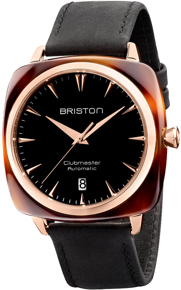 Briston Watch Clubmaster Classic Acetate Gold 19640.PRA.TI.1.LVCH. It is this spirit, combined with its watchmaking DNA, that gives Briston watches its unique style. Working with innovative materials, such as cellulose acetate, and colours give Briston watches their distinctive look. Briston watches also offers the perfect balance between a contemporary timepiece and a chic accessory, casual but resolutely and thoroughly accessible.