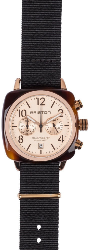 Briston Watch Clubmaster Classic Icons 14140.PRA.T.6.NB. It is this spirit, combined with its watchmaking DNA, that gives Briston watches its unique style. Working with innovative materials, such as cellulose acetate, and colours give Briston watches their distinctive look. Briston watches also offers the perfect balance between a contemporary timepiece and a chic accessory, casual but resolutely and thoroughly accessible.